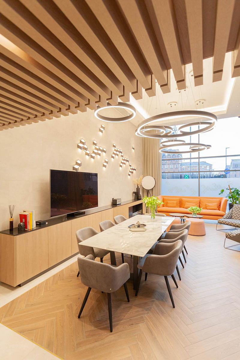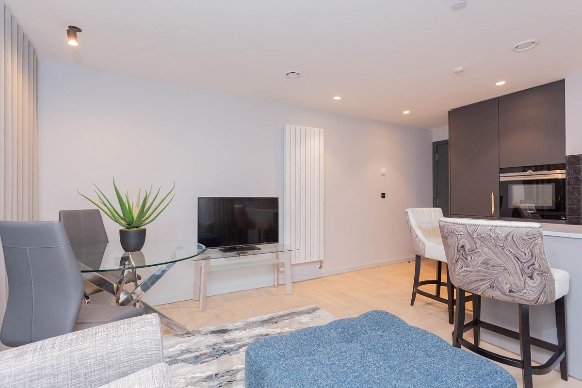 Renowned London interior designers Day True crafted every detail within FX with sophisticated integrated lighting, high-quality wooden flooring, striking contemporary kitchens and luxurious finishes throughout. Apartment 6 mirrors the ambience of a high-end boutique hotel, delivering comfort and refinement in every corner.