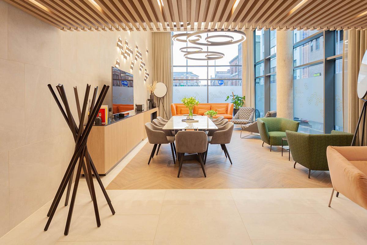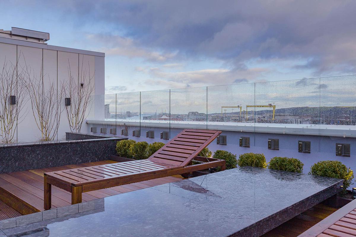 Residents enjoy exclusive access to a beautifully curated lounge and coffee bar a perfect setting to unwind, host friends, or book for private gatherings. A fully equipped fitness suite supports a healthy lifestyle, while the building's showpiece the rooftop terrace provides panoramic views across Belfast. Whether it's sunset drinks or a moment of calm above the city, this terrace elevates everyday living.