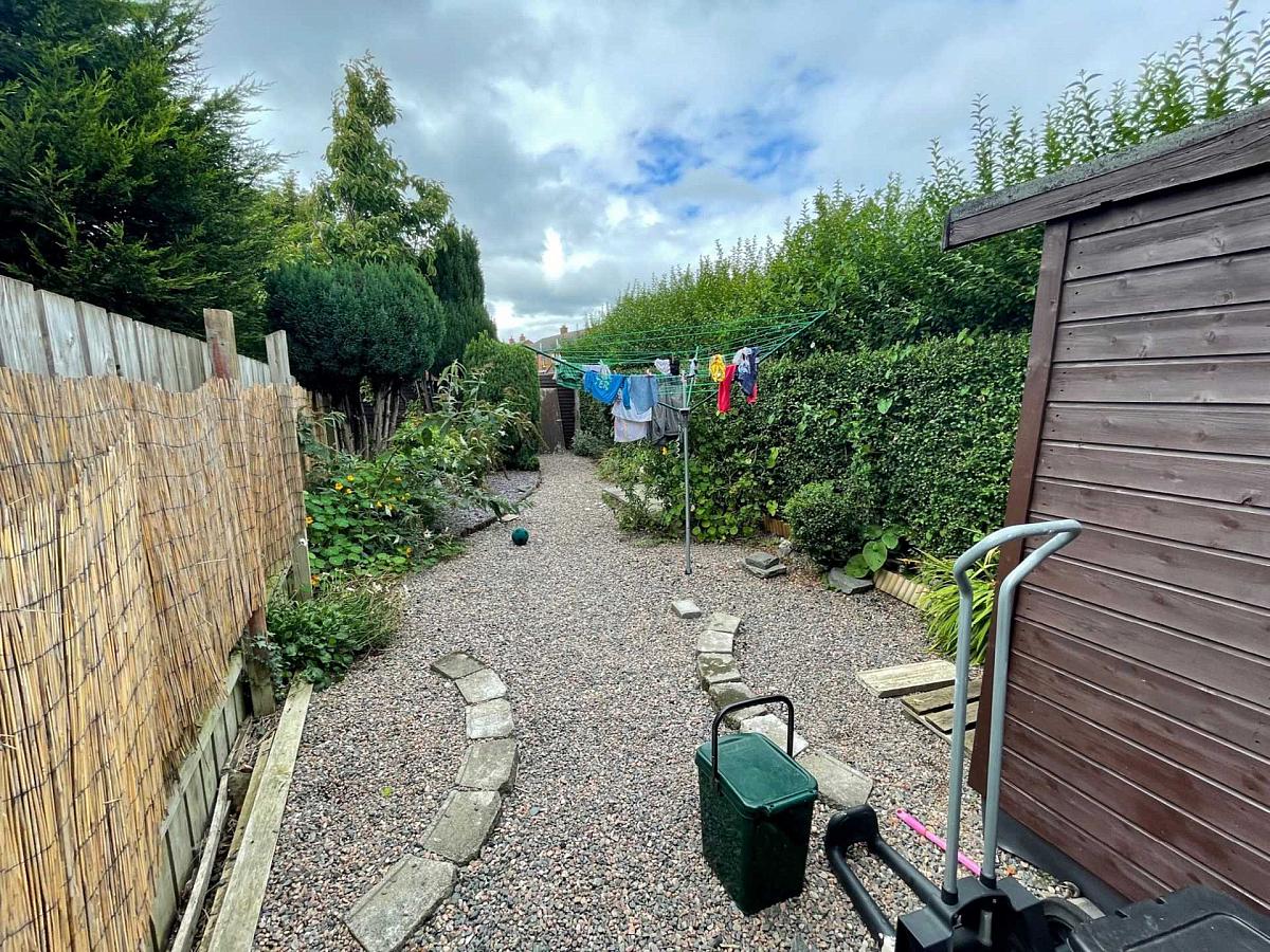 Low maintenance and fully enclosed garden with range of mature trees and shrubs.