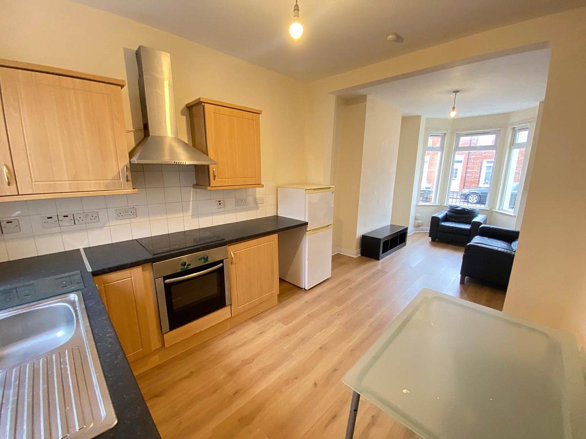 Open plan lounge/kitchen/dining - Laminate floor, range of Kicthen units and appliances.
