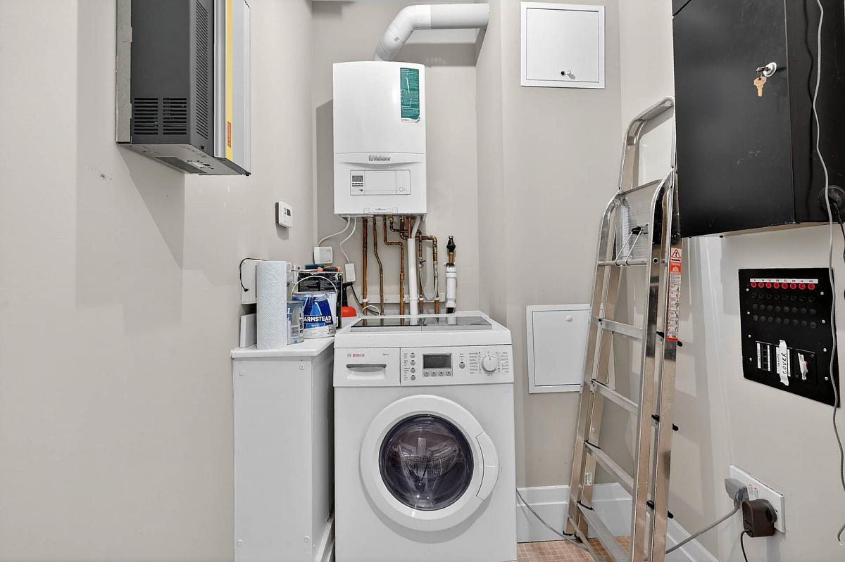 Gas boiler and plumbed for washing machine.