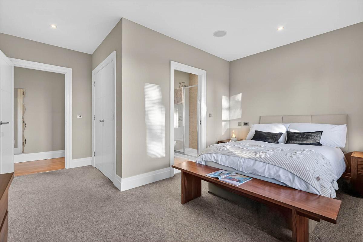 Master bedroom with walk in closet and en-suite shower room.