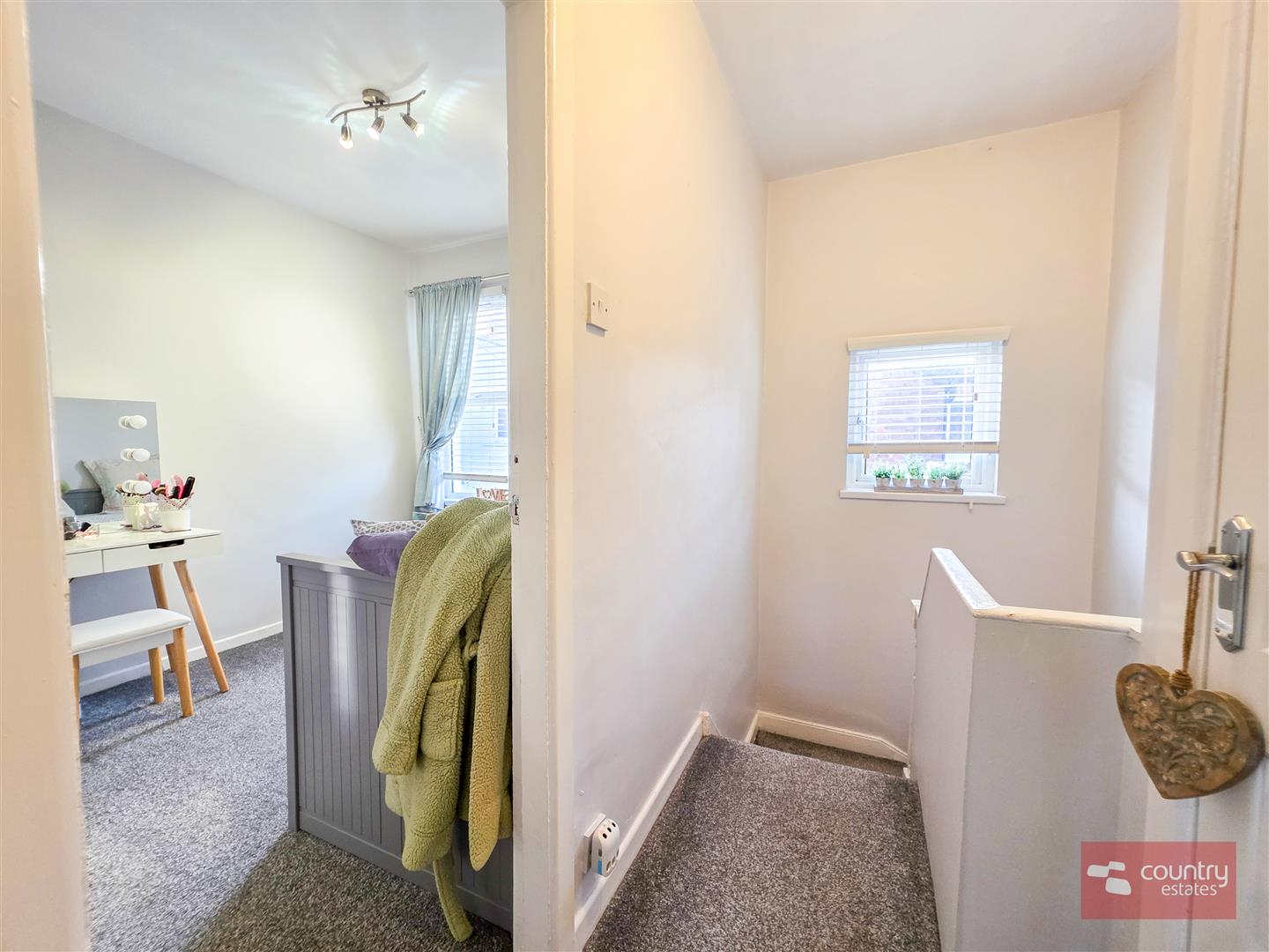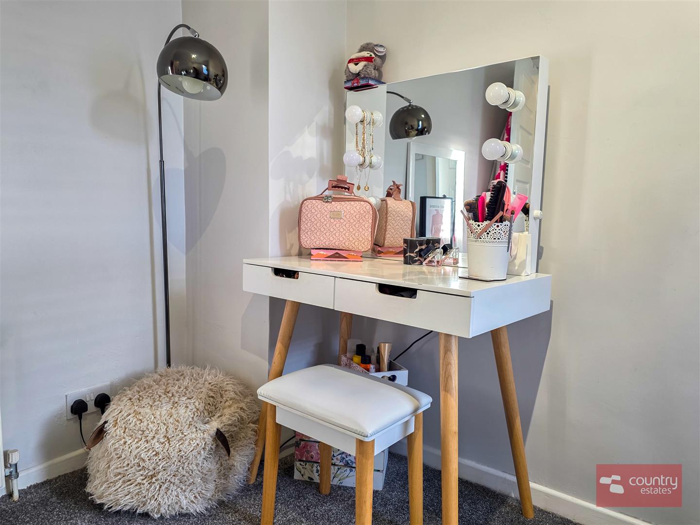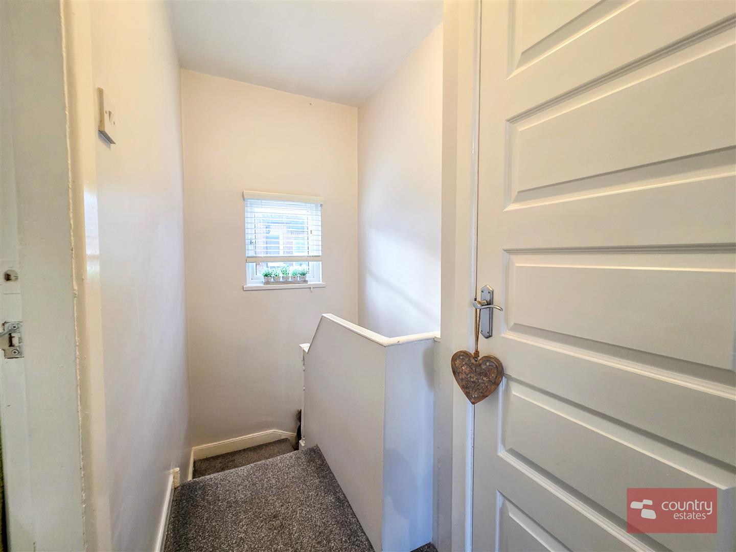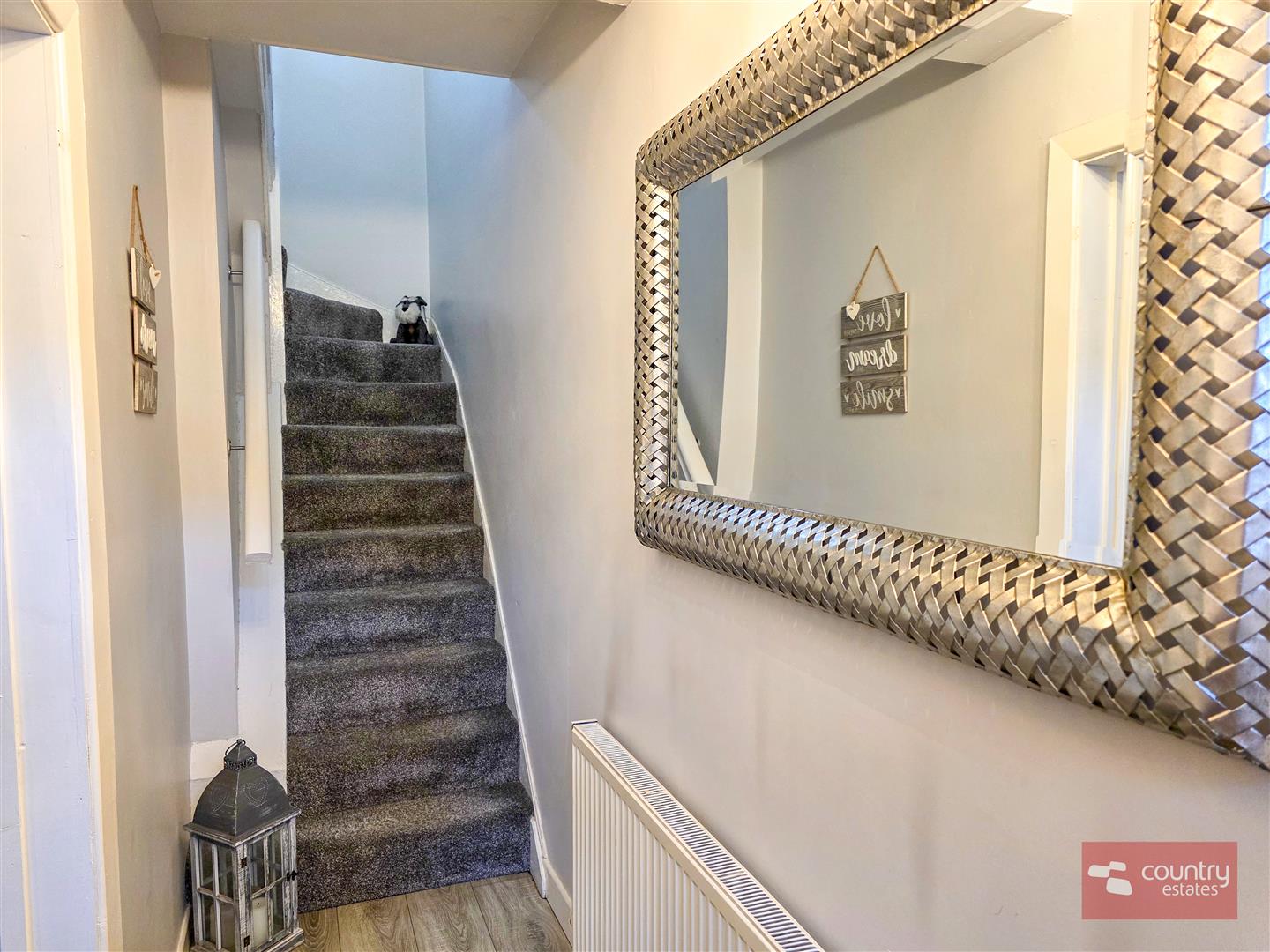 Integrated fridge freezer. Plumbed for washing machine and space for tumble dryer. Worktop for appliances. Low storage unit. Understairs storage cupboard. PVC double glazed door to rear yard.