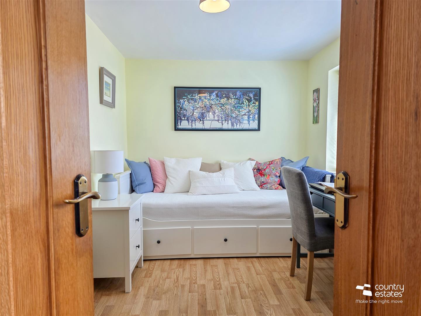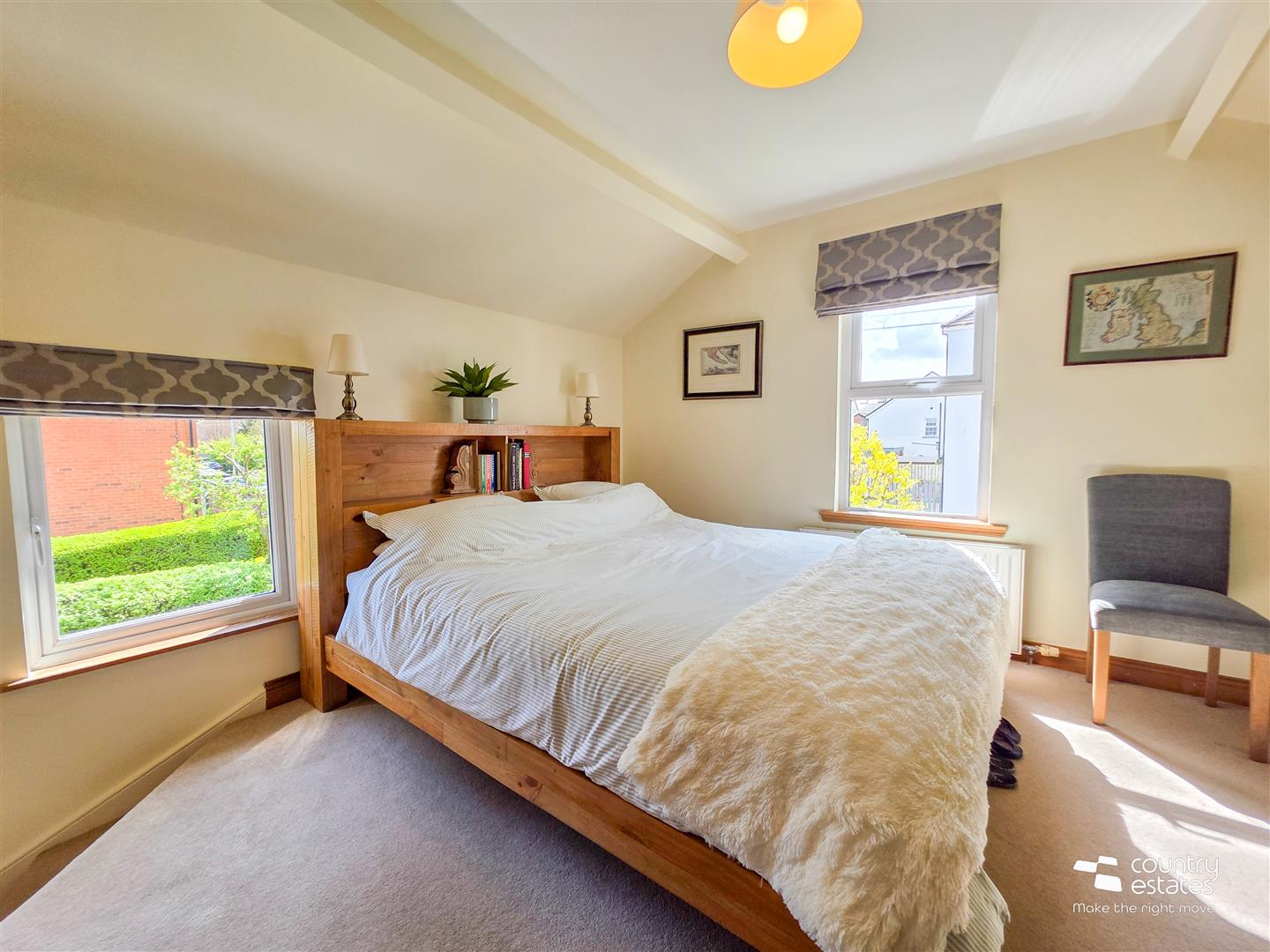 Dual window aspect. Bespoke fitted wardrobes.