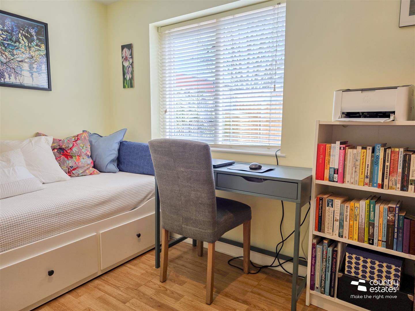 Quality laminate flooring. Presently used as study.