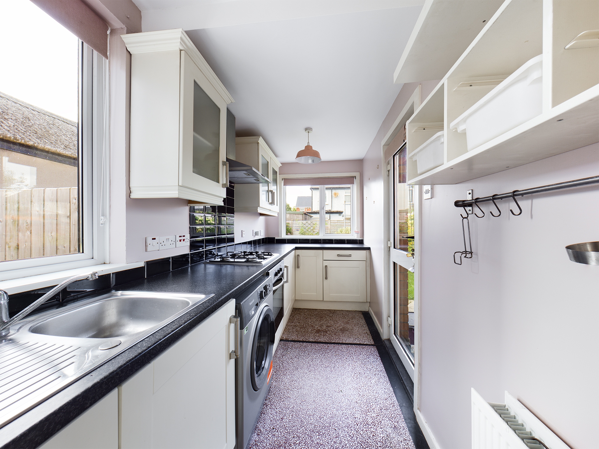The accommodation comprises of an attractive galley kitchen that will surely inspire you to show off your culinary skills. The living room is bright and spacious and includes an open fireplace as well as ample space for dining and entertaining. To top it off the double patio doors lead you out to the attractive sun soaked rear garden.