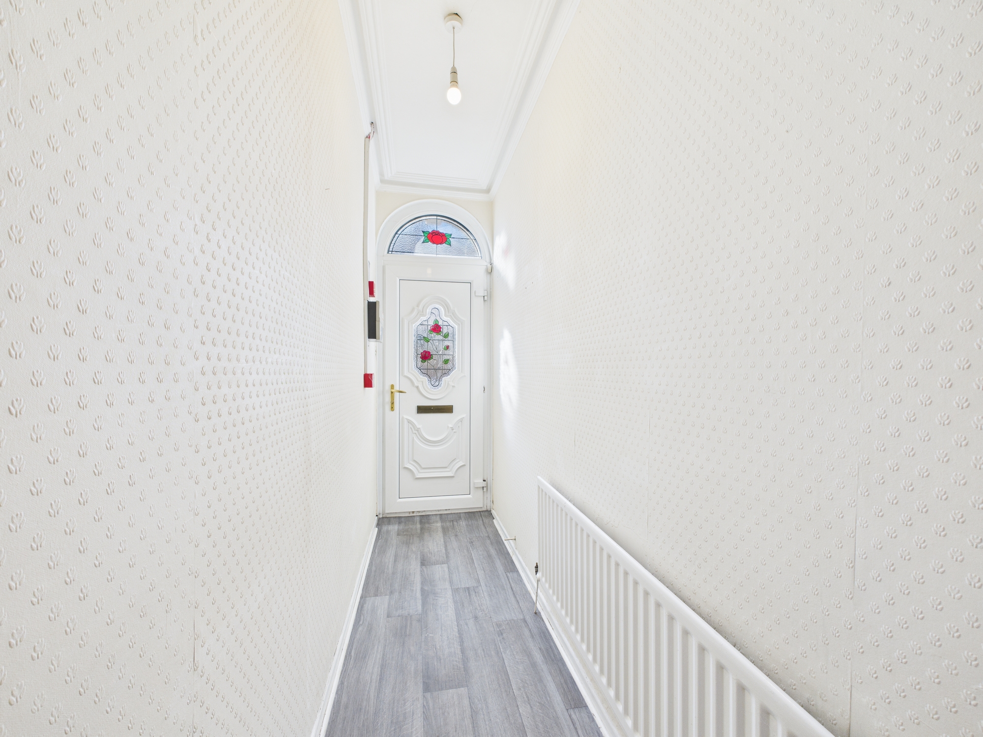 Entrance: PVC door, with stained glass leaded light inset, to: