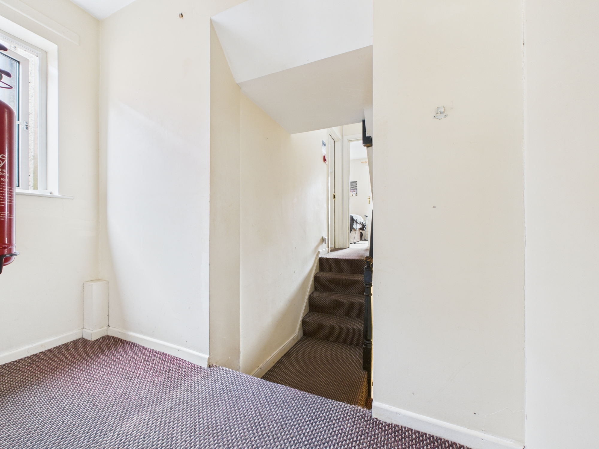 First Floor Return: PVCu double glazed window to side, stairs to first floor.