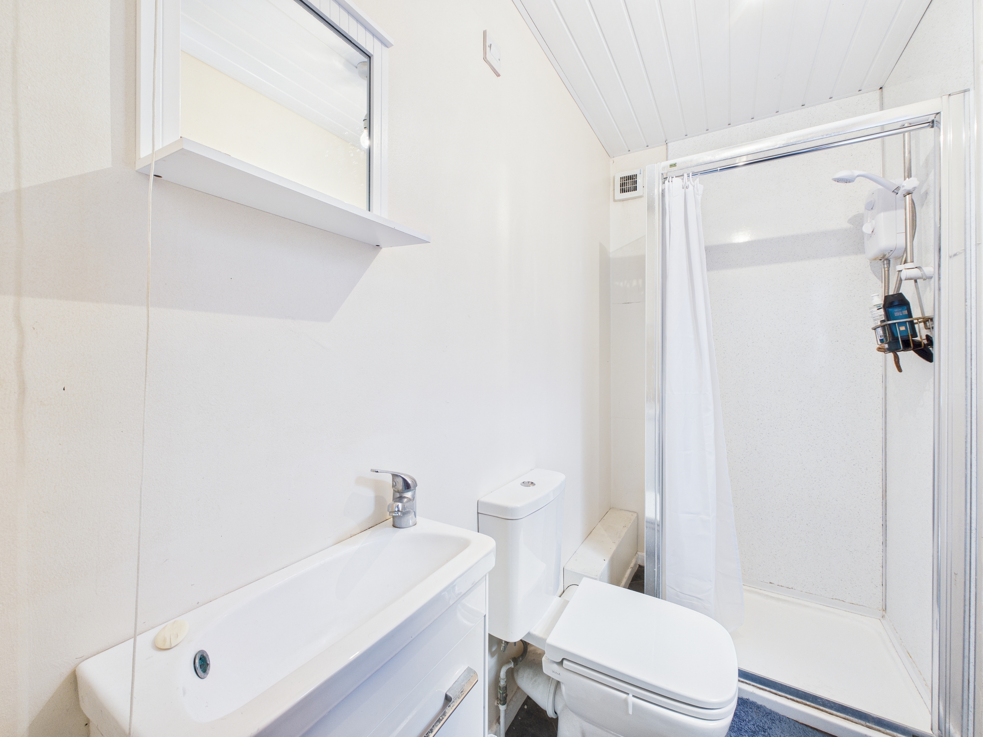 Shower Room: with corner shower cubicle with electric shower above, low level wc and pedestal wash hand basin. Radiator, ceiling light point, extractor fan, PVCu double glazed window to rear.