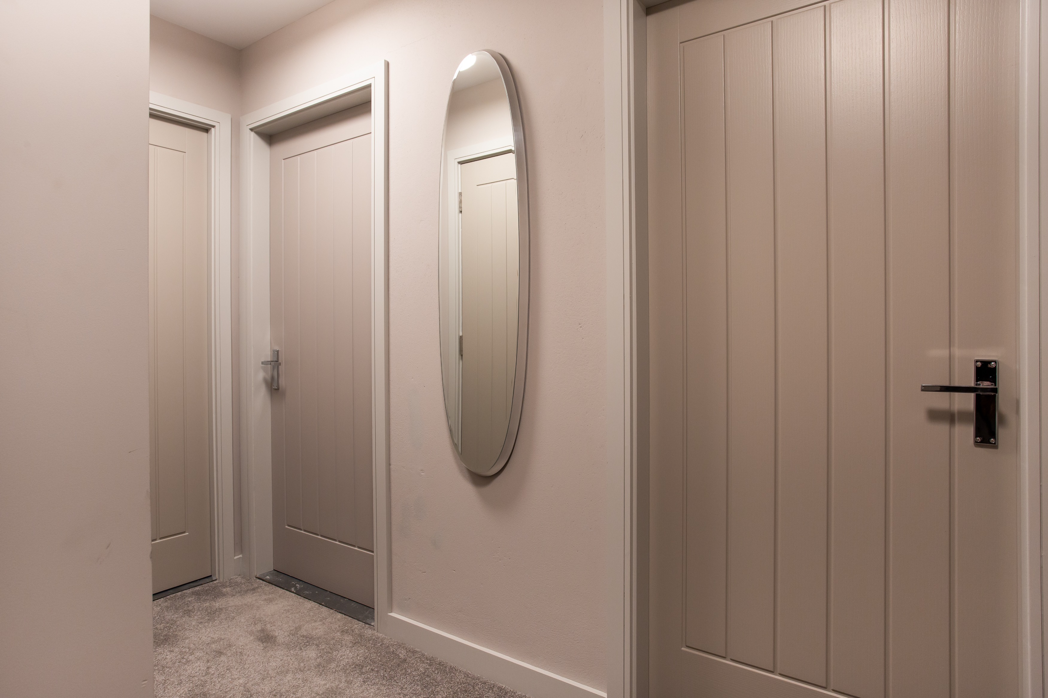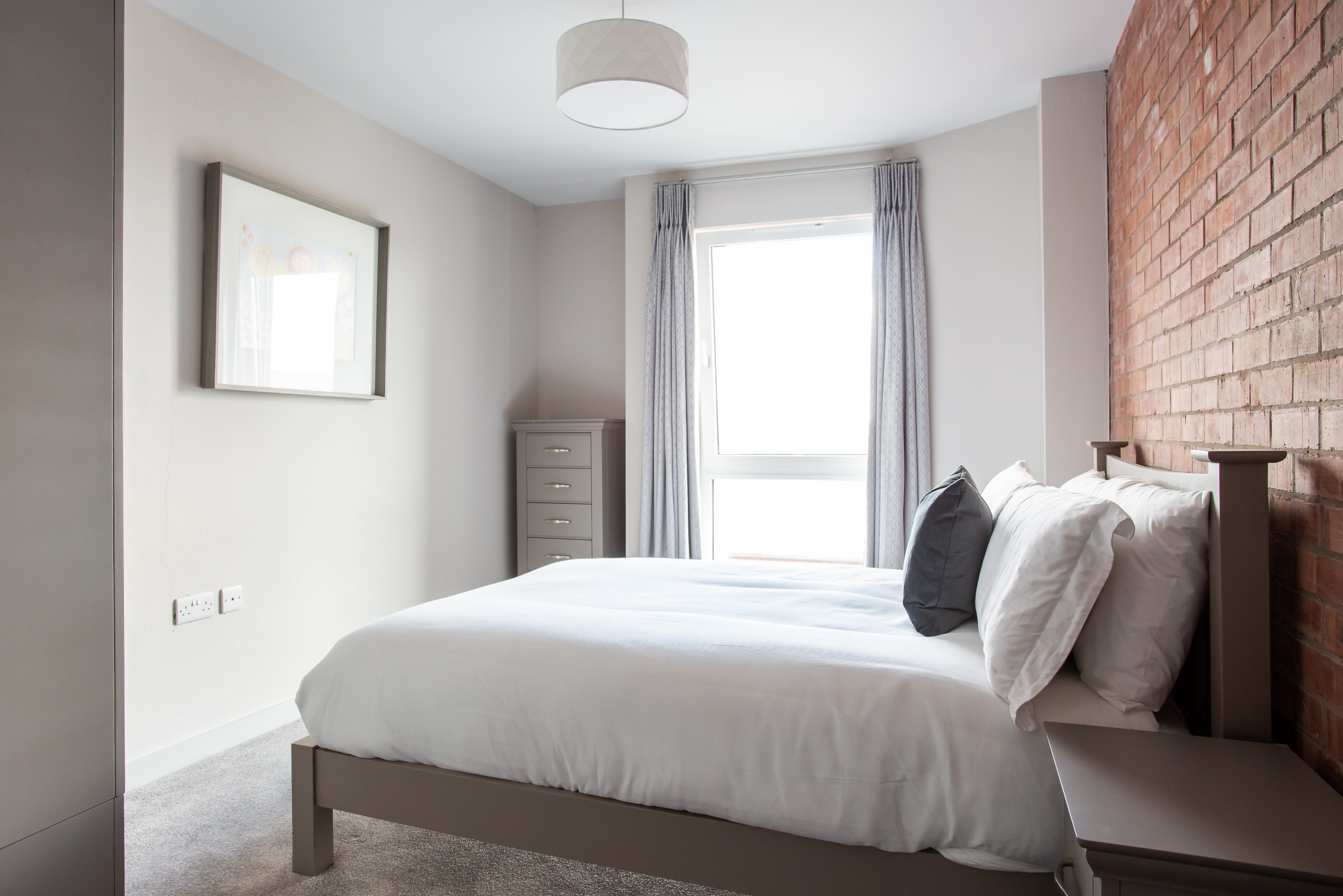 Dear Customer The Residence, a truly stunning development, has been designed, created and furnished to offer clients a standard to equal the interior of a prestigious home but affording them flexible arrangements to match their personal requirements. Yours faithfully Garvagh Homes Stylish 2 Bedroom overlooking the bustling Ormeau Rd This light filled corner apartment features a Verde green fitted kitchen with elegant slim copper handles, a slim dove grey metro wall tile and stone effect worktop. The kitchen comes complete with an integrated fridge freezer, washer dryer and dishwasher and leads to a stylish dining area with a textured neutral dining table and quilted brown leather dining chairs. The neutral floor tile extends throughout the lounge which is beautifully furnished with a rich teal chenille sofa and matching chair and a large walnut sideboard with matching display unit. The exposed red brick wall provides a dramatic backdrop to this vibrant living space which has been accessorised with accents of yellow and metallic hues, with botanical wall art completing the look. The light filled master bedroom with en-suite has been designed in soft neutral tones creating a calming yet luxurious space. This room features a mid-grey shaker style king size bed with matching double wardrobe, chest of drawers and bedside tables. The large ensuite finished in blush features a double shower, neutral style floor tile, charcoal metro gloss wall tile with pale grey geometric splash back adding interest. The generous second bedroom with full length window provides views of the city and continues with a neutral palette of greys. It is furnished with a stylish dove grey leather and walnut bedstead and a grey gloss and walnut double robes, tallboy, dressing table with stool and bedside tables. The main bathroom features a large bath and overhead shower, floating sink, towel radiator and sensor mirror. It has been tastefully designed in light neutral tones with sea green metro wall tiles, a stone hexagon floor tile and grey geometric splash back. EPC rating: B. Council tax band: X, Landlord Registration Number: NI74E00777.