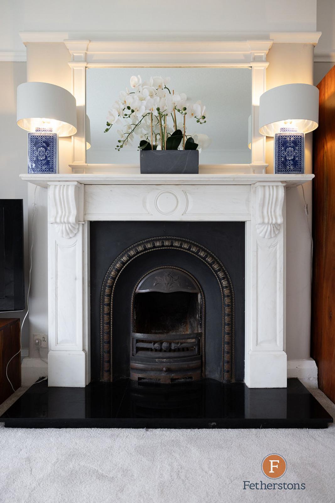 LOUNGE 15' 10" x 15' 7" (4.83m x 4.75m) Feature marble fireplace, cornice ceiling, picture rail, bay window.