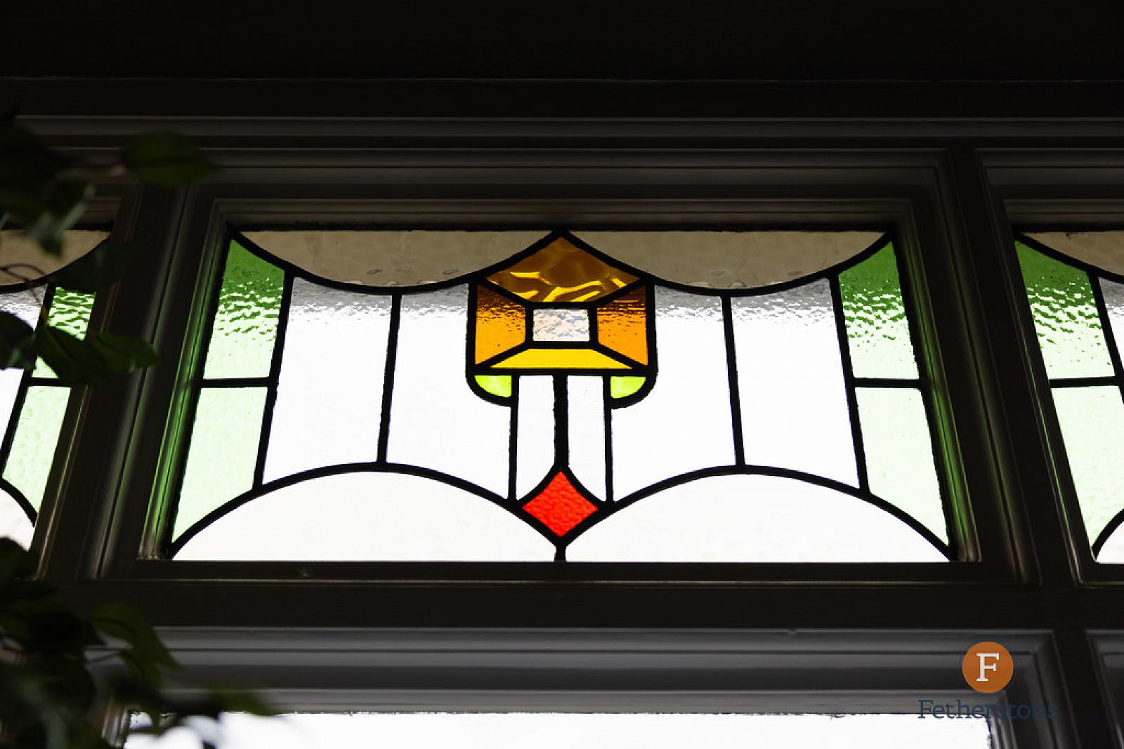 FIRST FLOORING LANDING Feature stained glass window, cornice ceiling.