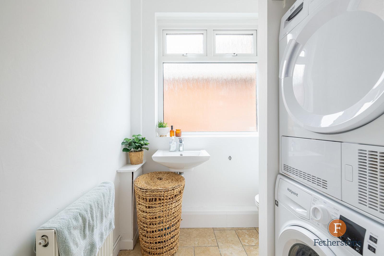 CLOAKROOM / UTILITY Low flush wc, wash hand basin, plumbed for washing machine tiled floor.