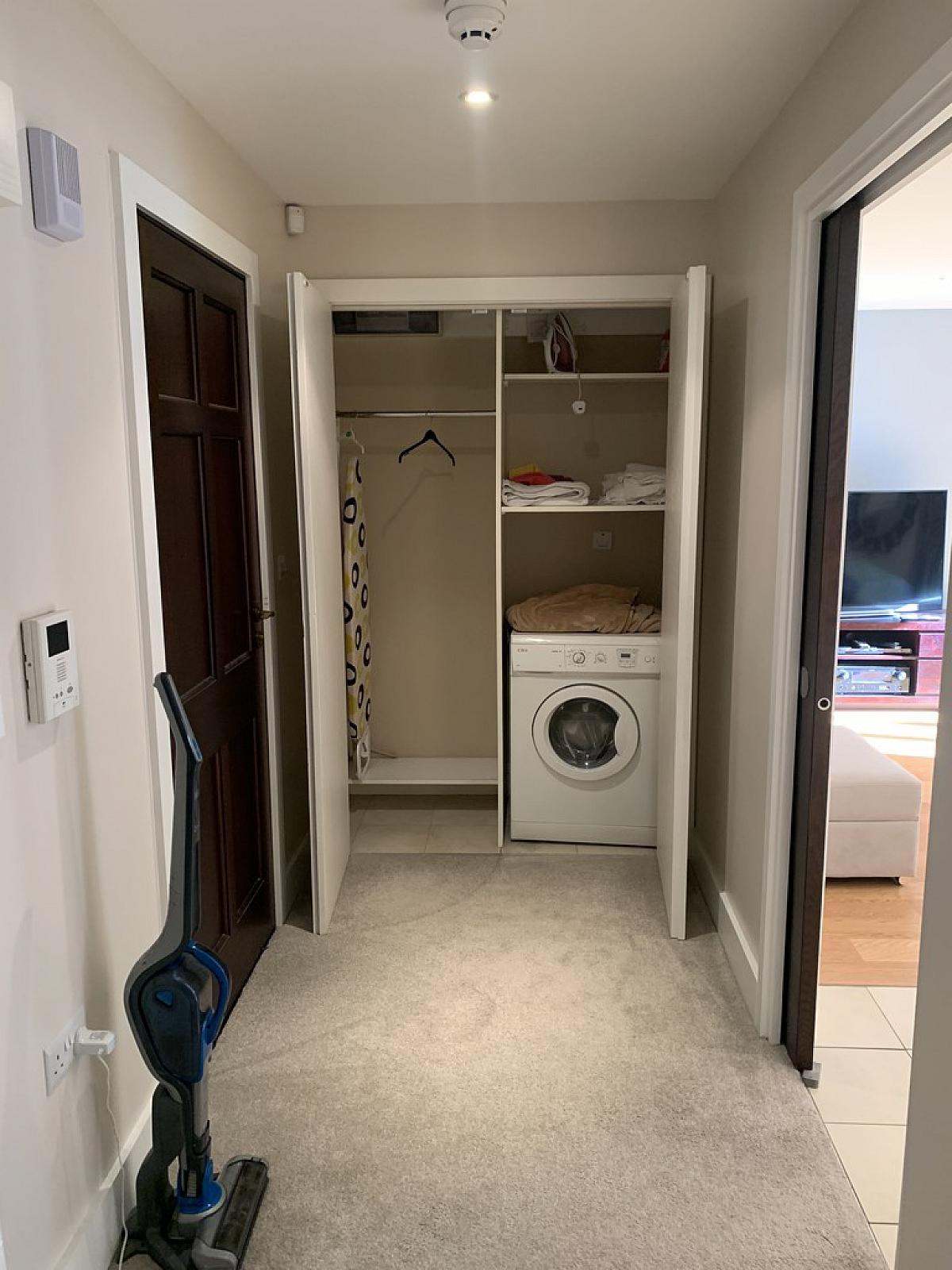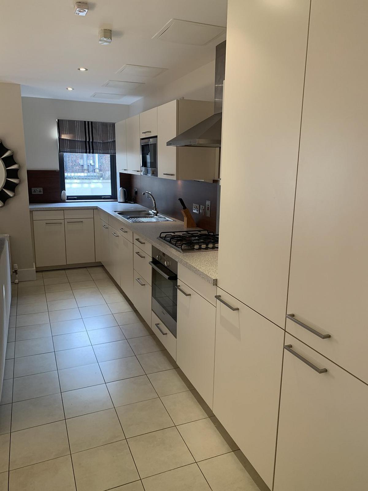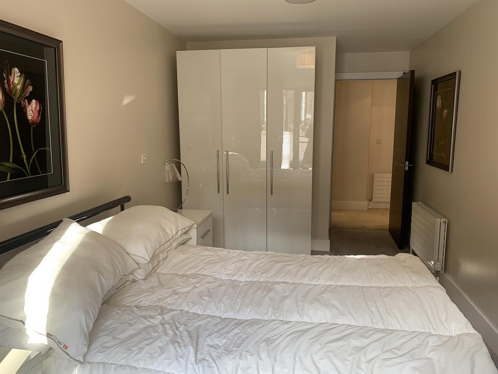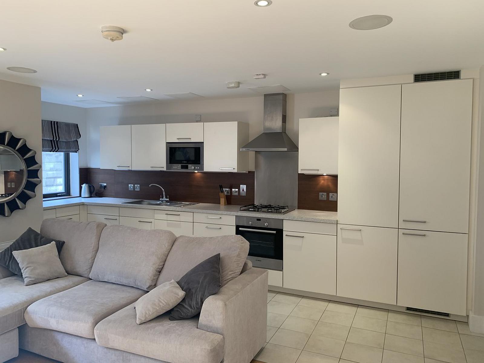 Offering bright and spacious living, the property features a stylish open-plan living and dining area leading to a modern kitchen with integrated appliances. The generously sized double bedroom and luxurious shower room add to the appeal. A charming balcony off the living room provides a side view of Custom House Square.