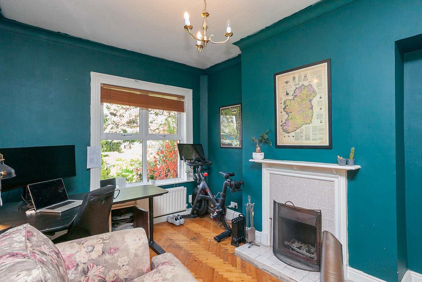 FAMILY ROOM 12' 10" x 9' 11" (3.91m x 3.02m) (Potential Home Office) Parquet wood block floor, cast iron fireplace with tiled inset and hearth, cornice ceiling