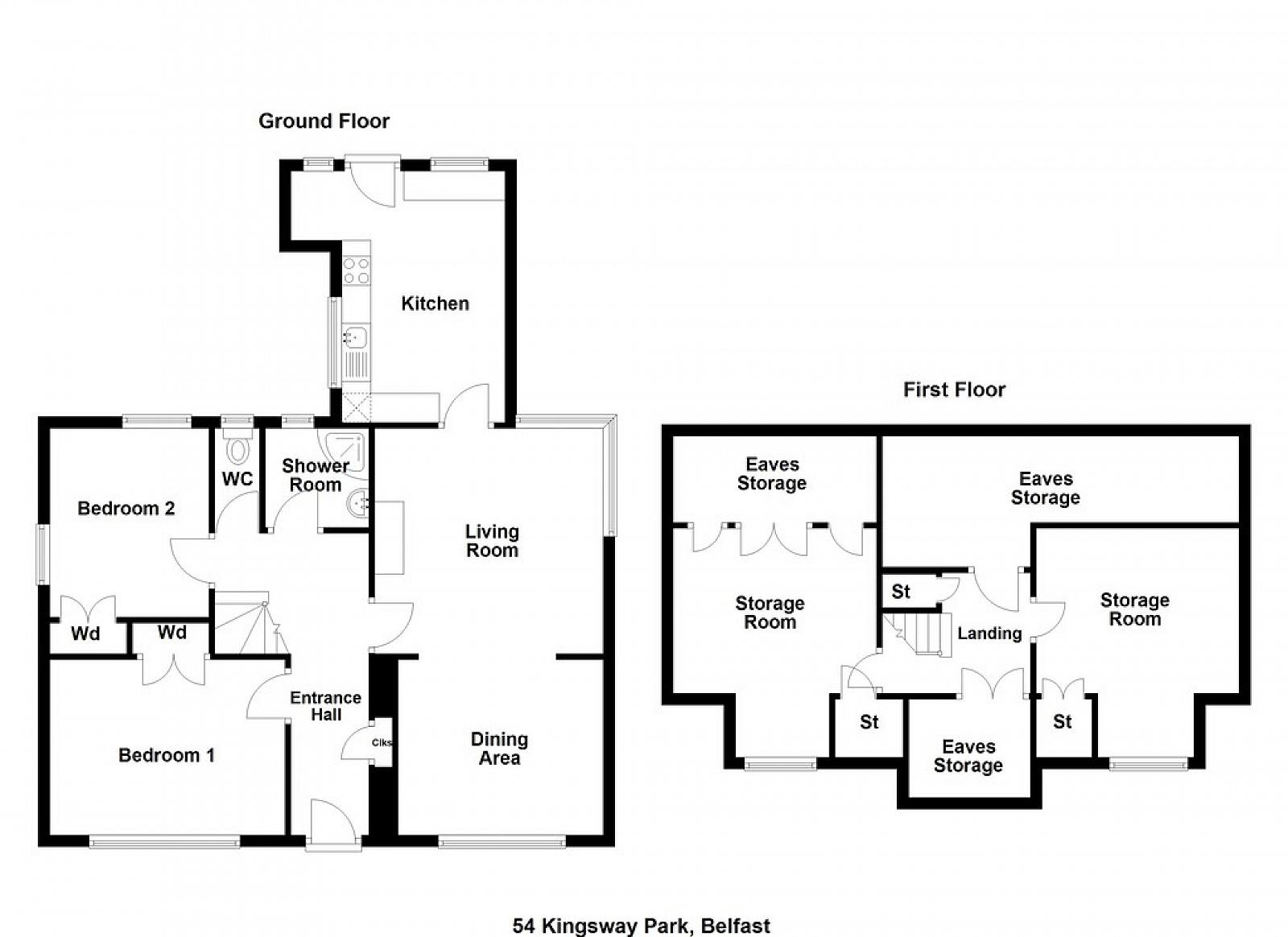 The accommodation comprises of a bright and spacious living and dining room, kitchen with dining area, shower room and separate w.c and two generous bedrooms both with built in storage. A further two rooms with excellent storage are to the first floor.
