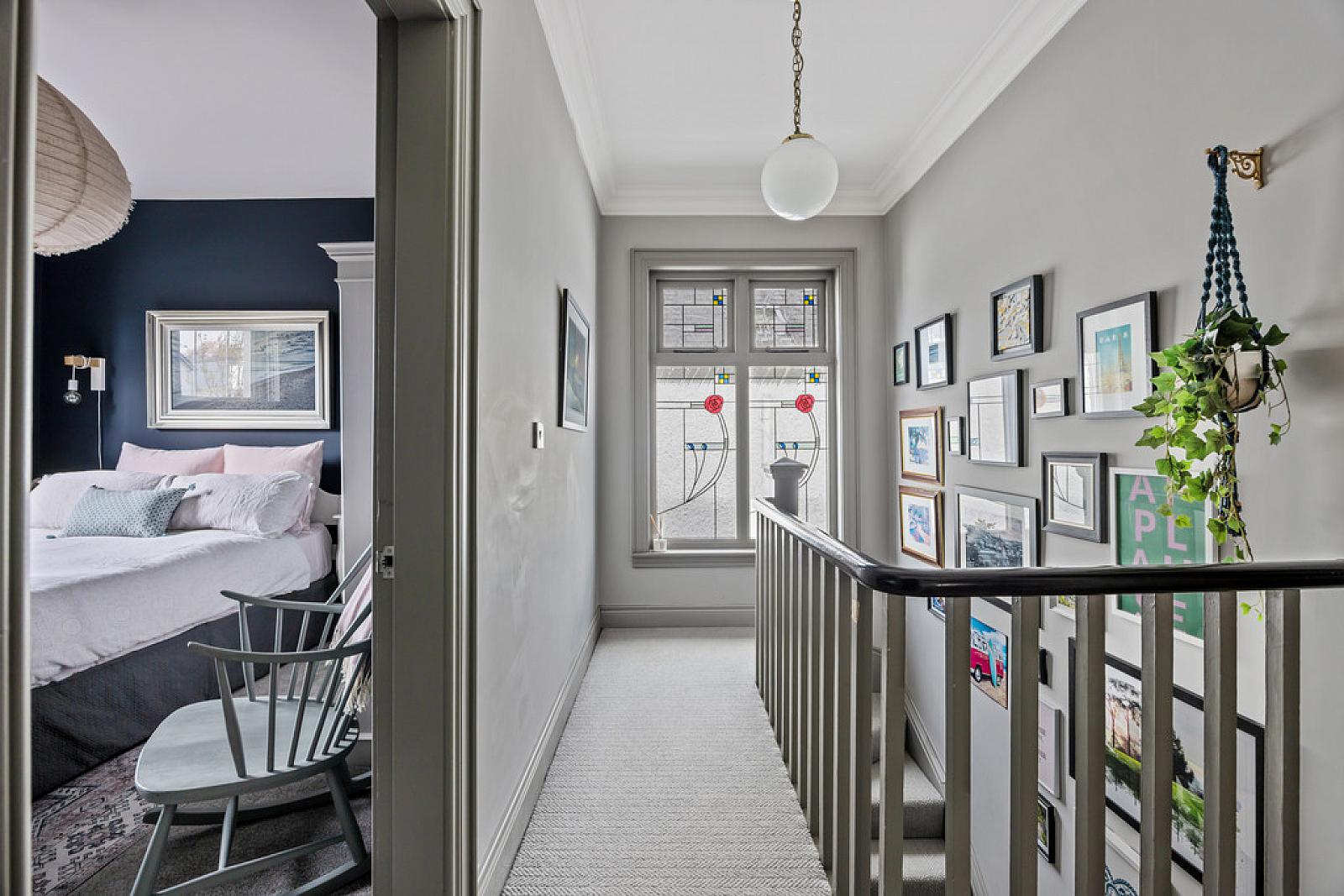 LANDING Original banister and newel post, feature stained glass window, cornice ceiling, access to roof space, airing cupboard.