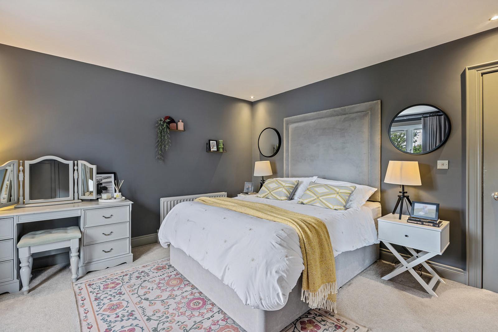 Upstairs, there are four well-proportioned bedrooms. The principal bedroom benefits from a dedicated dressing room and a contemporary ensuite shower room. One of the additional bedrooms is enhanced by a built-in walk-in wardrobe, while the remaining rooms are served by a stylish family bathroom.