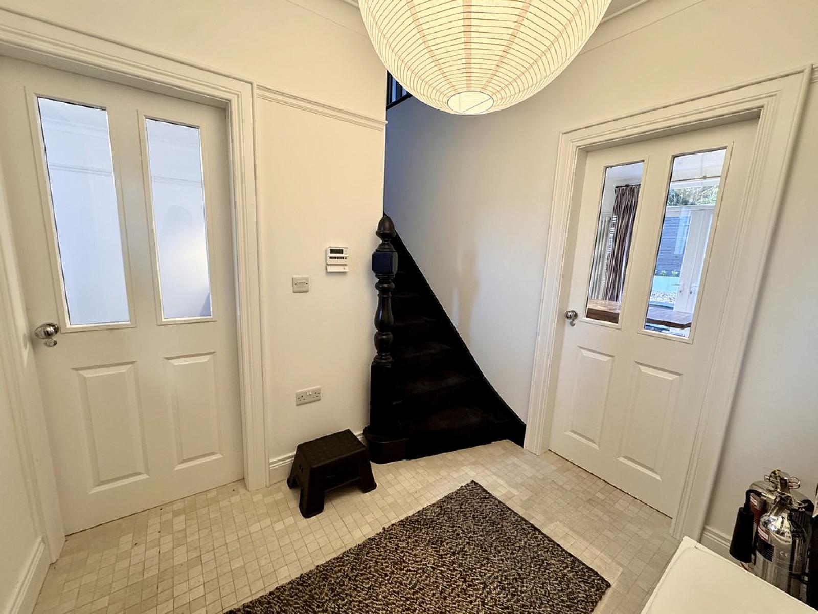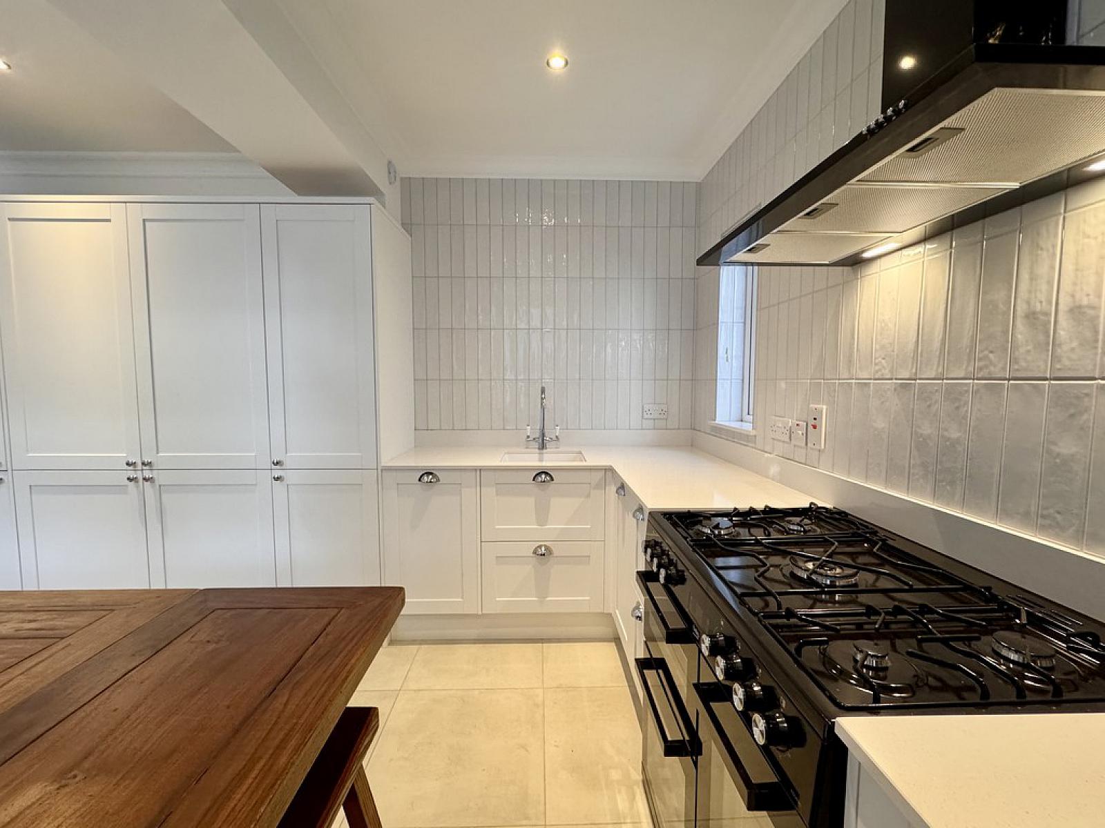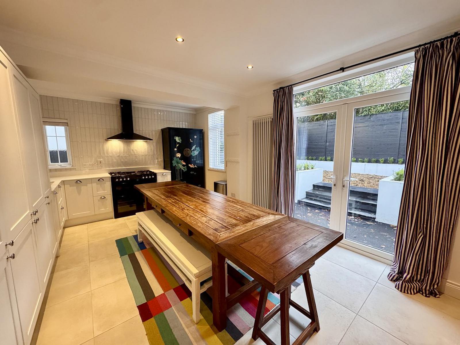 Upon entry, the hallway leads to the front reception room, complete with venetian blinds and a feature stove. To the rear, a spacious contemporary kitchen with sleek cabinetry is fully equipped with an integrated washing machine, tumble dryer, dishwasher, full-size fridge and full-size freezer, maximising convenience for sharers. Further features include a double gas stove with matching extractor hood, along with a dining table, sideboard and additional cupboard space, providing excellent storage solutions.