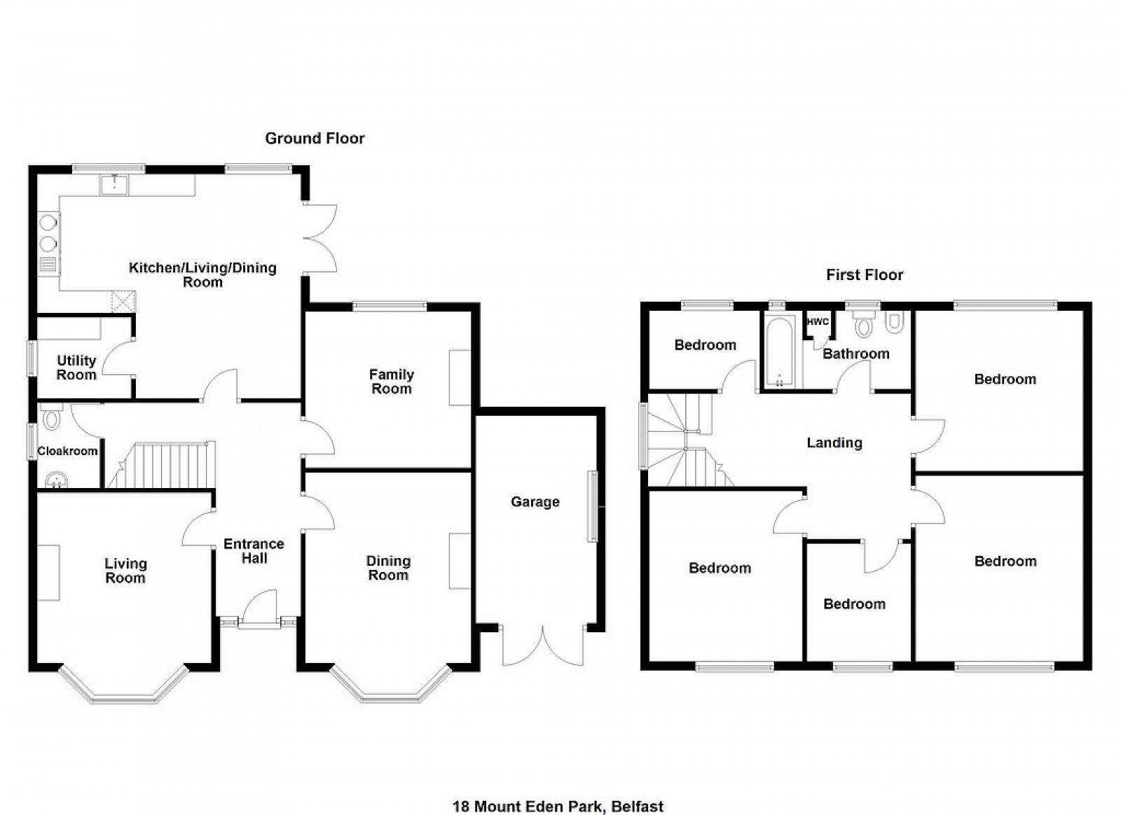 The ground floor offers a welcoming reception hall, generous lounge with an original fireplace, a dining room, a separate family room which overlooks the rear garden along with a fitted kitchen which is open plan to family and dining areas.