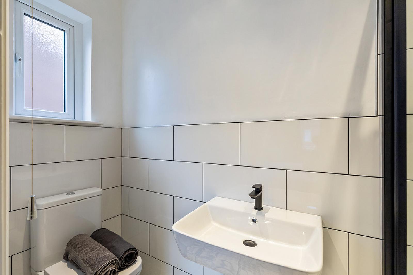 W.C. Low flush w.c, tiled floor, gas boiler.