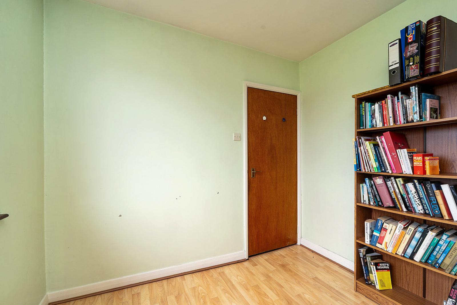 BEDROOM 10' 4" x 8' 6" (3.15m x 2.6m) Laminate wood strip flooring.