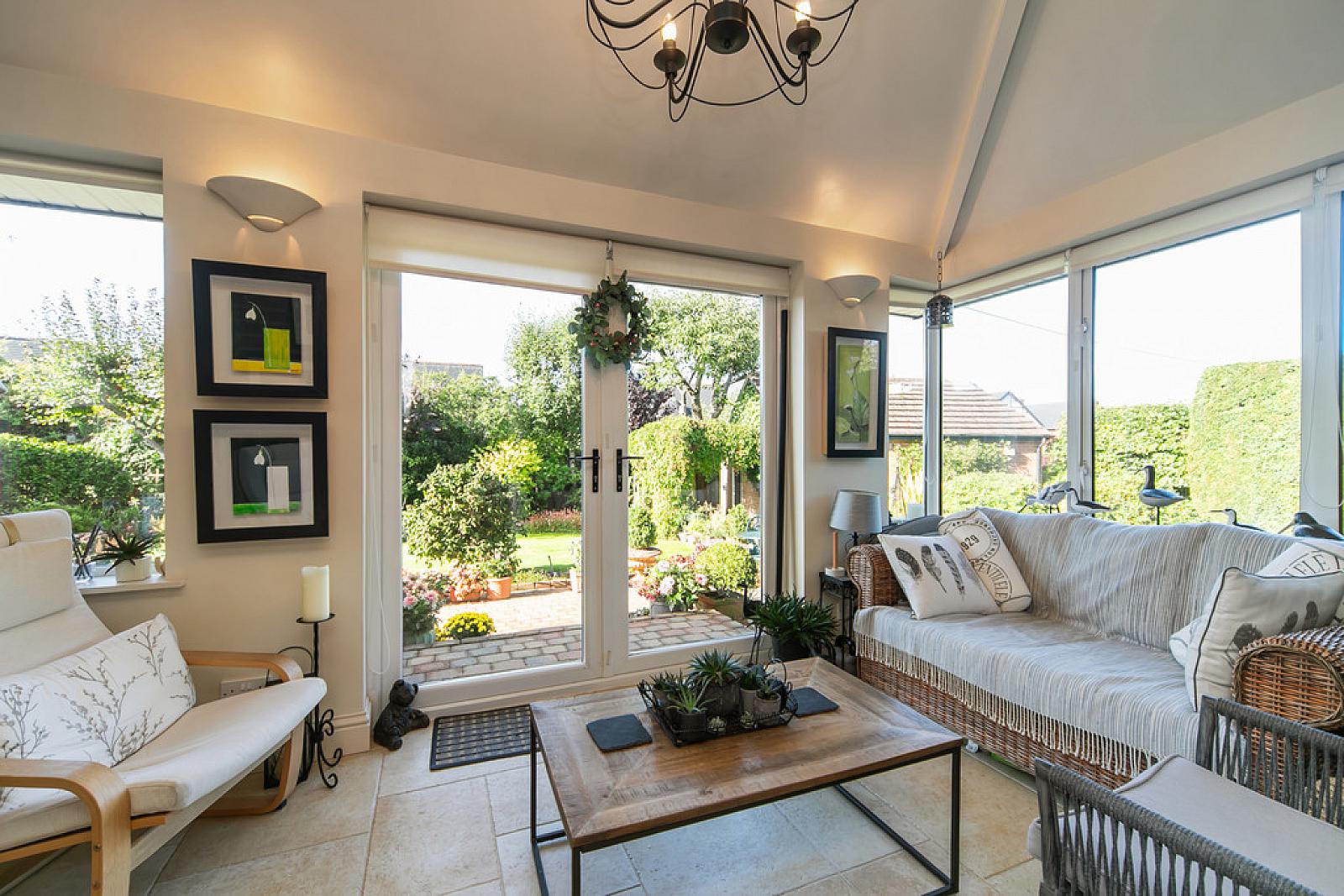 The internal accommodation is perfectly complemented by the generous level, corner site with gardens in lawns to the front, side and rear along with sheltered sitting areas, patio, driveway parking and a double garage. All windows and external doors benefit from double glazing.