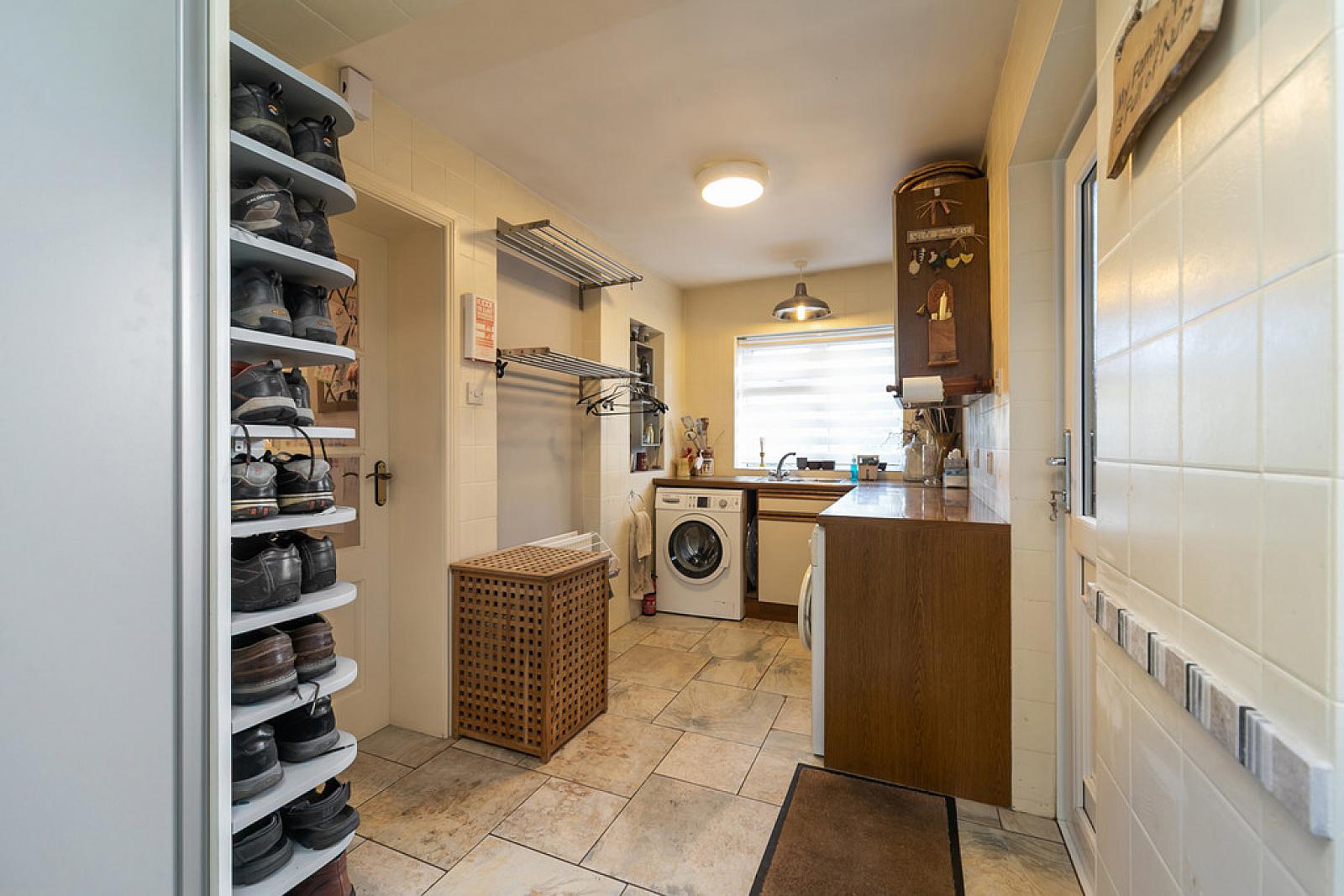 UTILITY ROOM 17' 3" x 6' 4" (5.26m x 1.93m) Range of high and low level units, work surfaces, 1.5 bowl single drainer stainless sink unit with mixer tap, plumbed for washing machine, tiled floor, part tiled walls, external access.