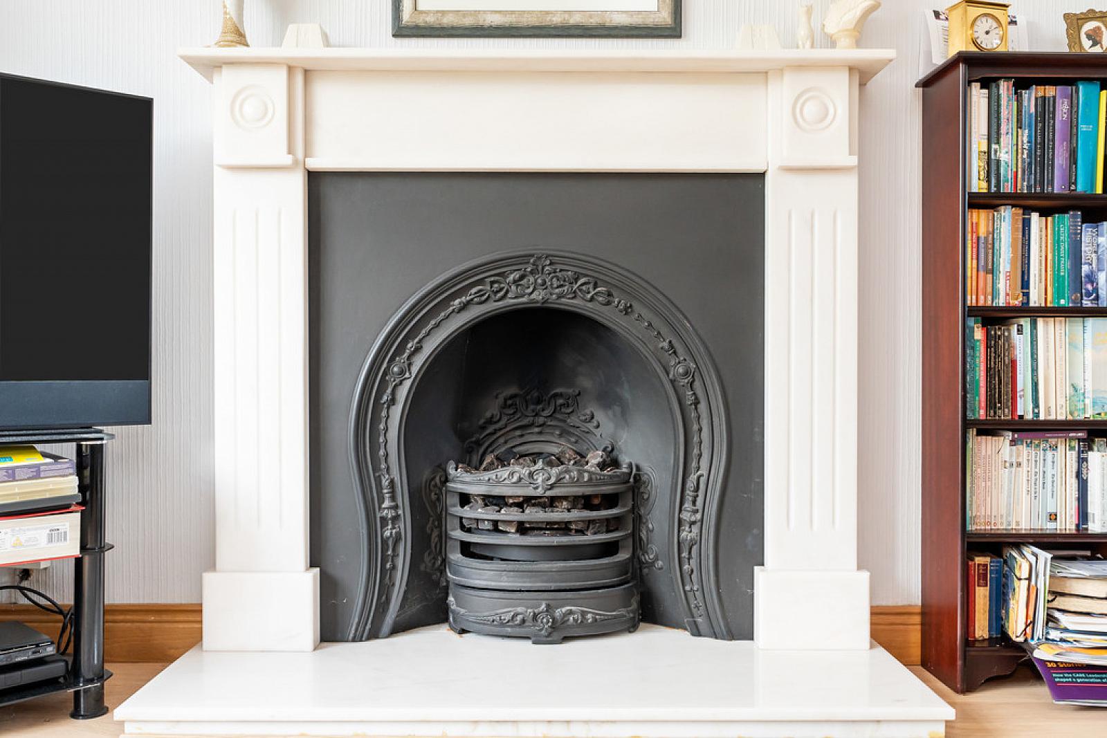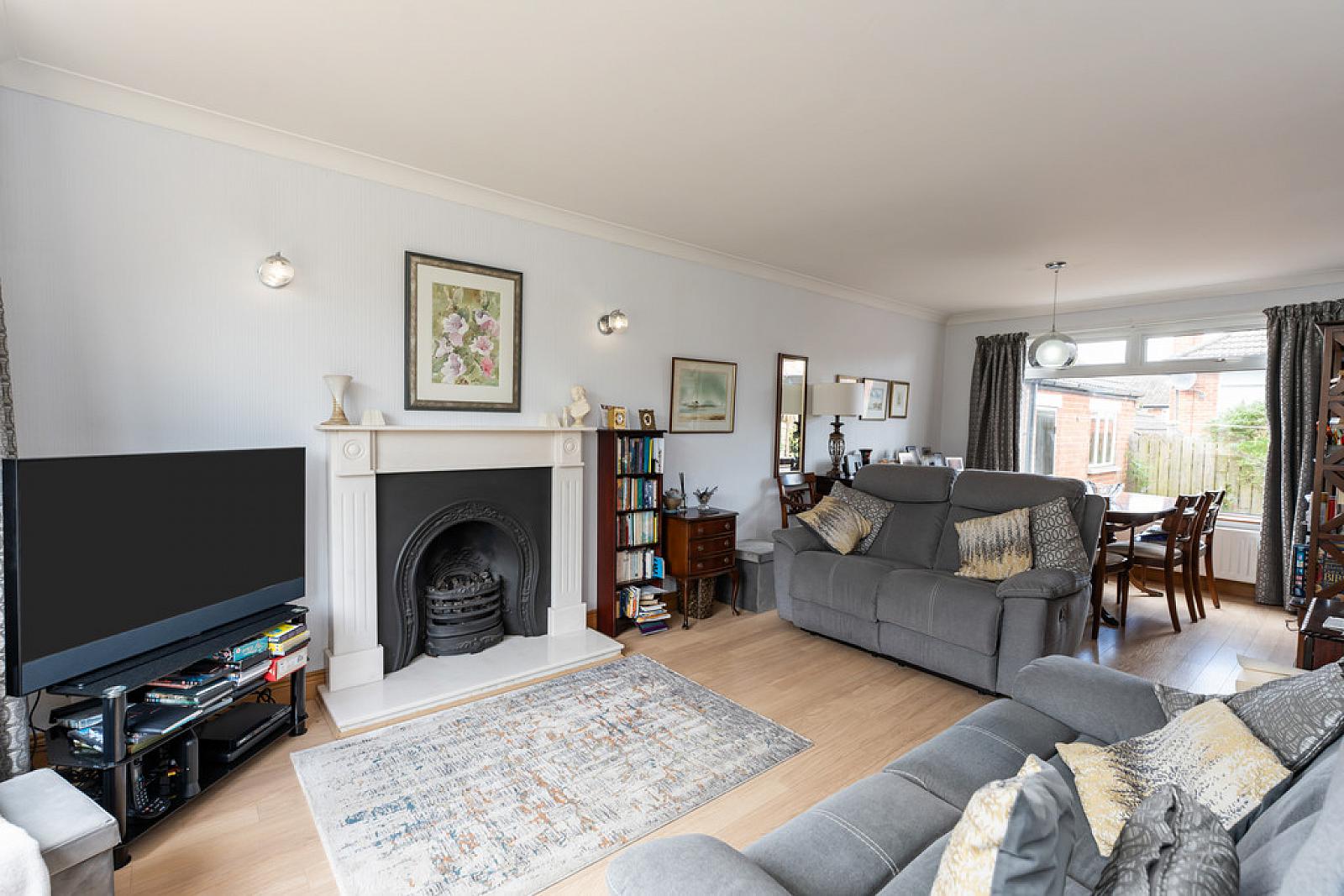 LIVING / DINING ROOM 22' 3" x 11' 2" (6.790m x 3.411m) Feature fireplace with marble hearth and surround with gas inset. Feature bay window. Cornice ceiling. Laminate floor.