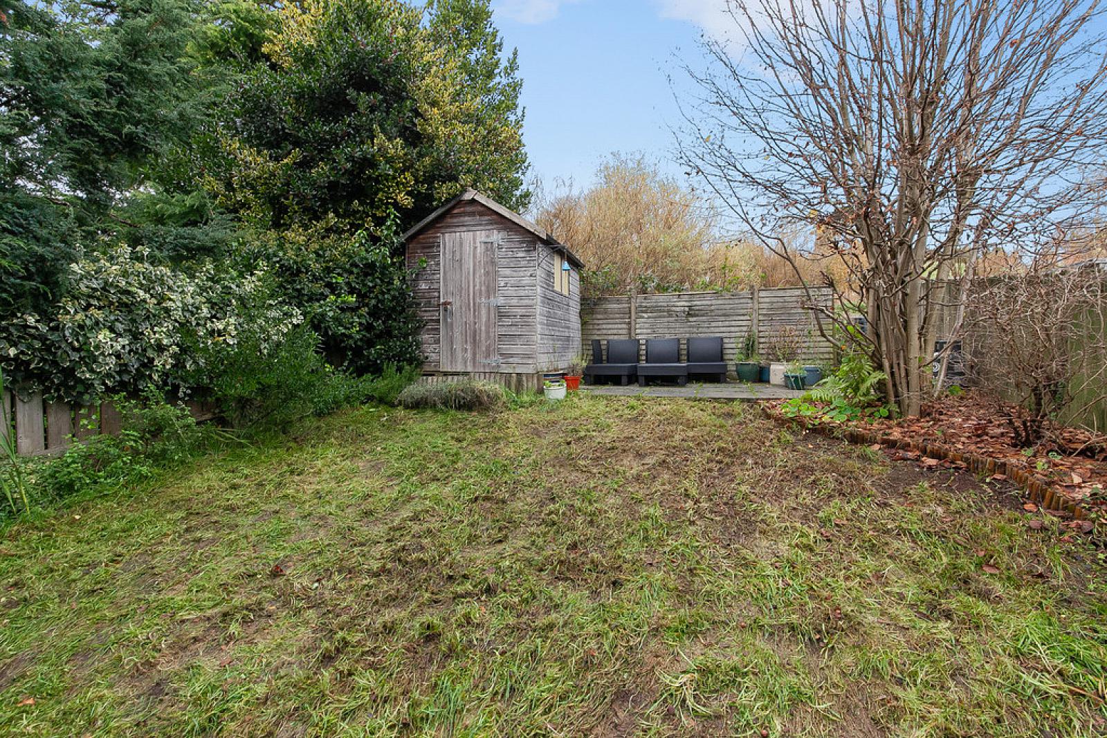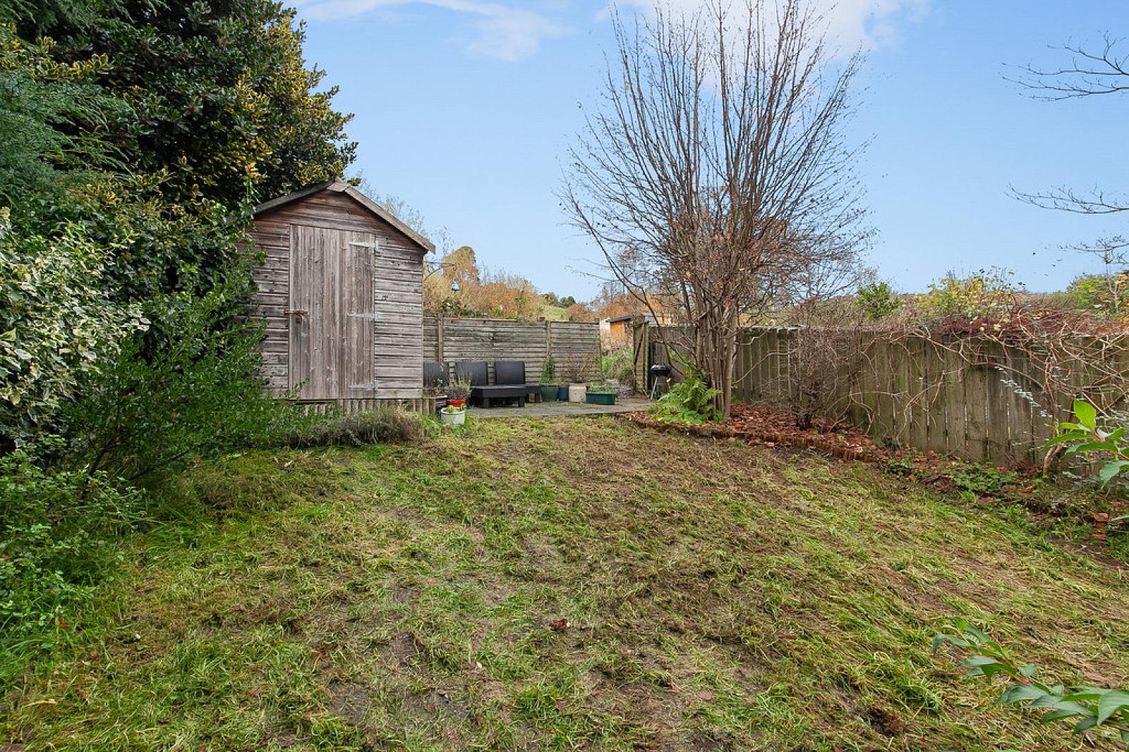 OUTSIDE Loose stone driveway with parking for two cars. Delightful enclosed and private rear garden in beautifully maintained lawns and beds with variety of shrubs and bushes backing onto open fields. Sheltered sitting area.