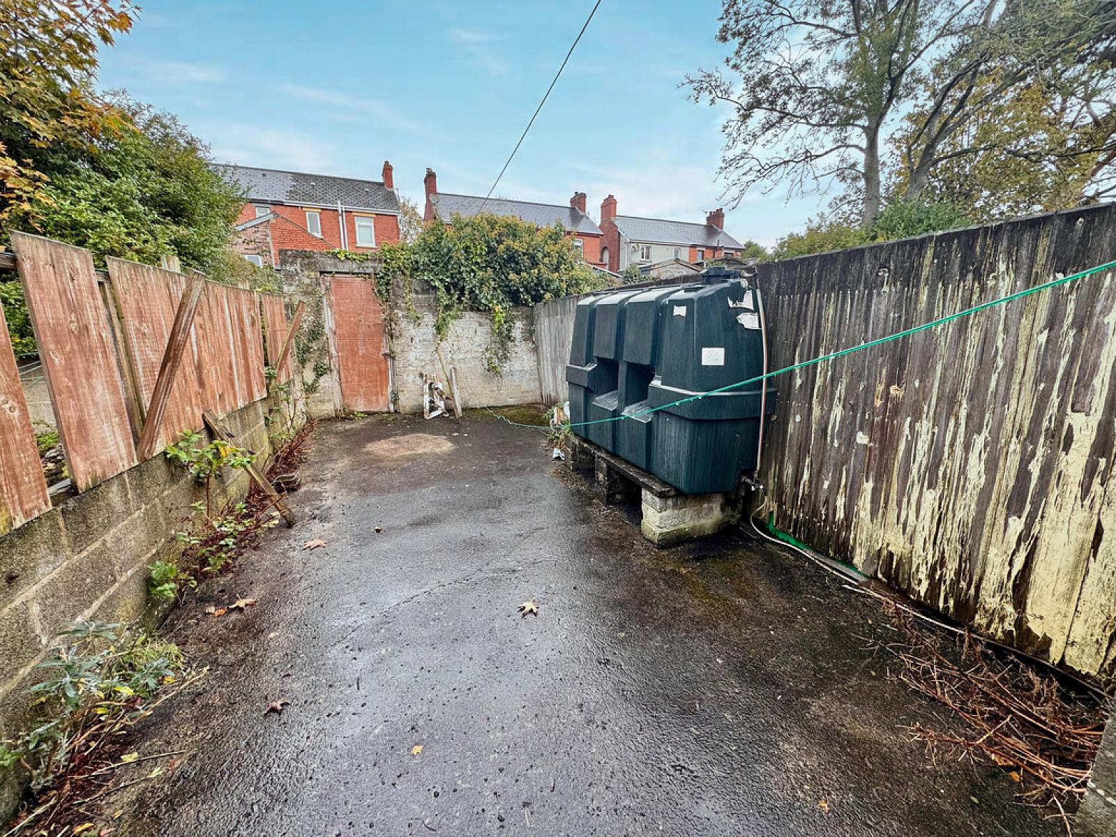OUTSIDE Enclosed rear yard, uPVC oil tank.