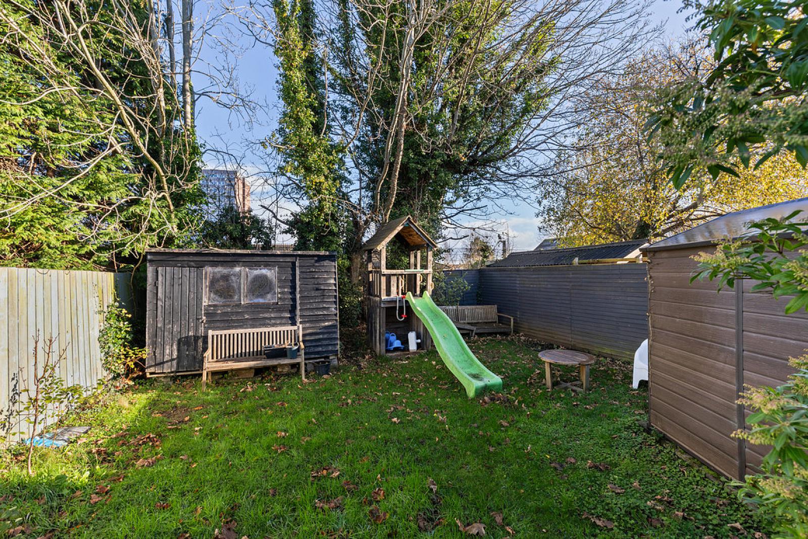 OUTSIDE Front garden in lawns, boundary fence and wall, driveway parking for two cars. Superb private and enclosed rear garden in lawns with mature planting, boundary fences, timber decked sitting area.
