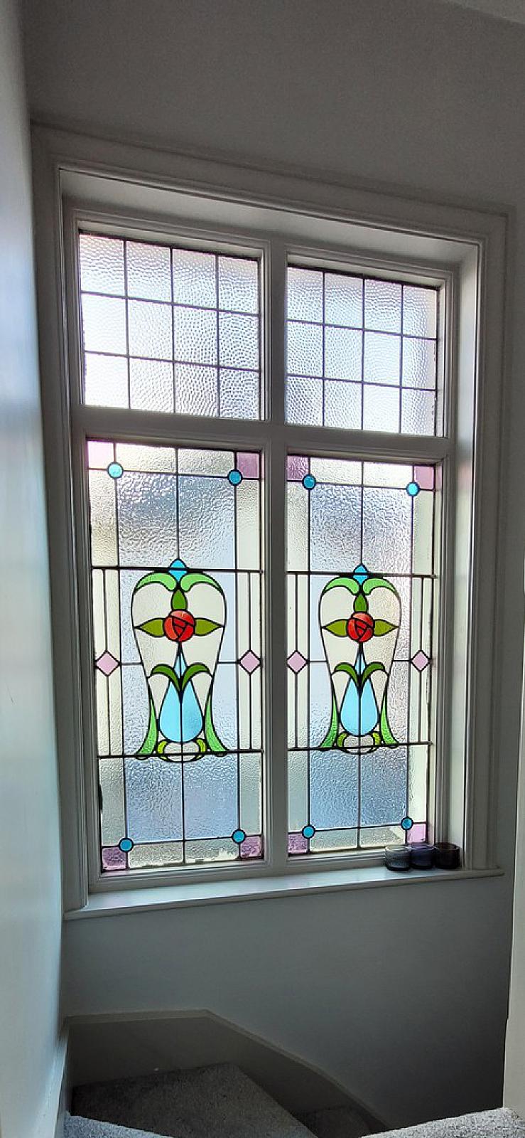 FIRST FLOOR LANDING Access to roof space, feature stained glass window.