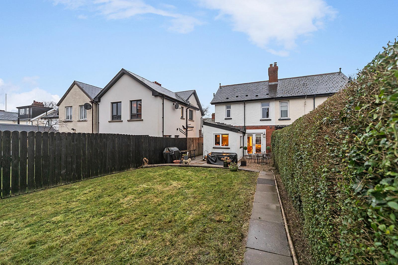 OUTSIDE Front garden in loose stones, driveway with parking. Delightful South Westerly facing enclosed rear garden in lawns with boundary fence and hedge, sheltered sitting area in paving and loose stones.