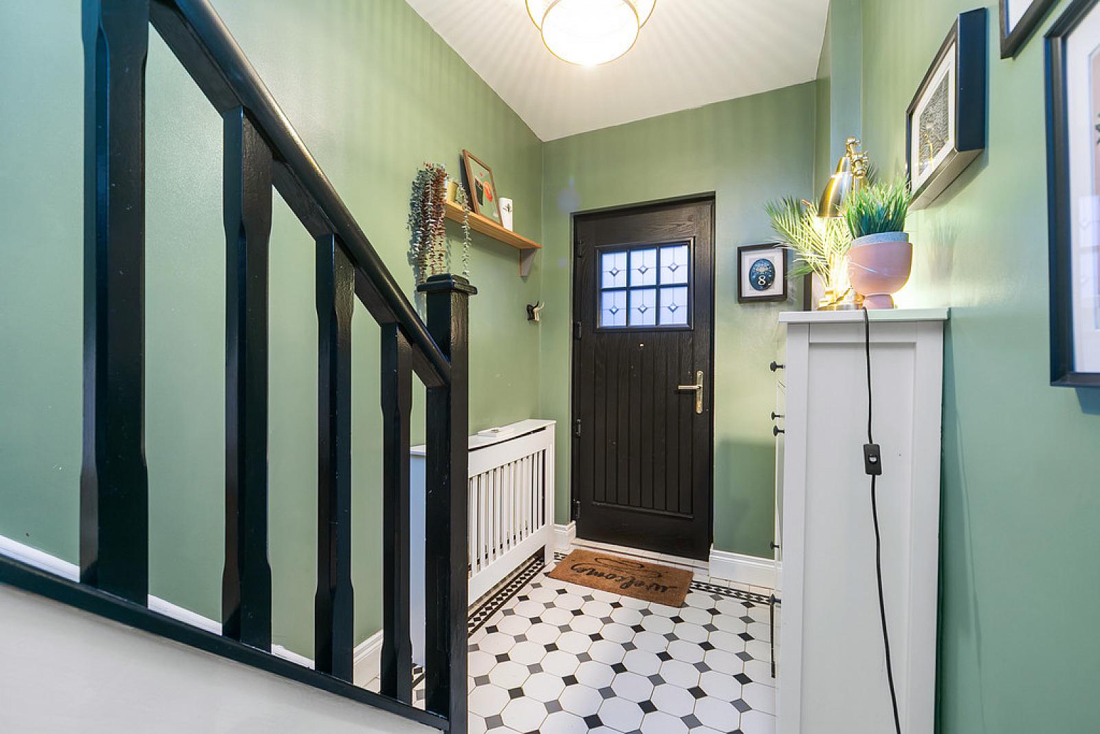 ENTRANCE HALL Feature tiled floor, under stairs storage.