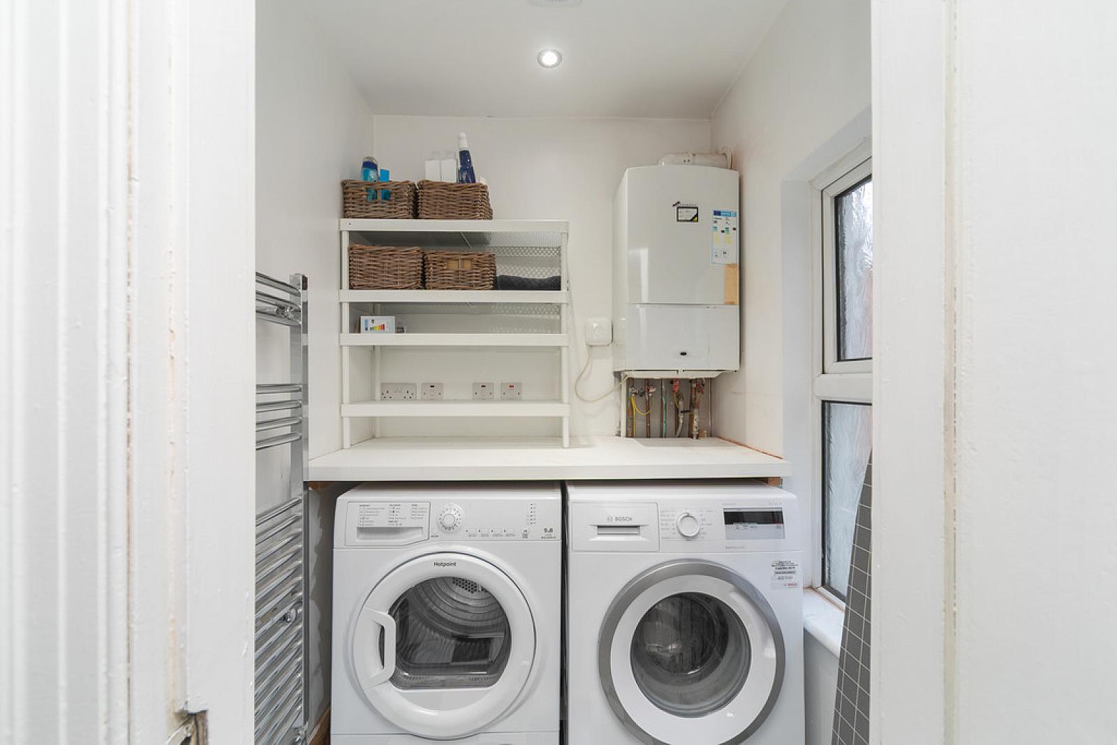 UTILITY ROOM 4' 7" x 4' 6" (1.41m x 1.39m) Plumbed for washing machine, space for tumble dryer, heated chrome towel radiator, gas boiler, extractor fan, tiled floor.
