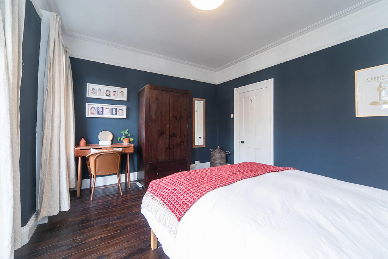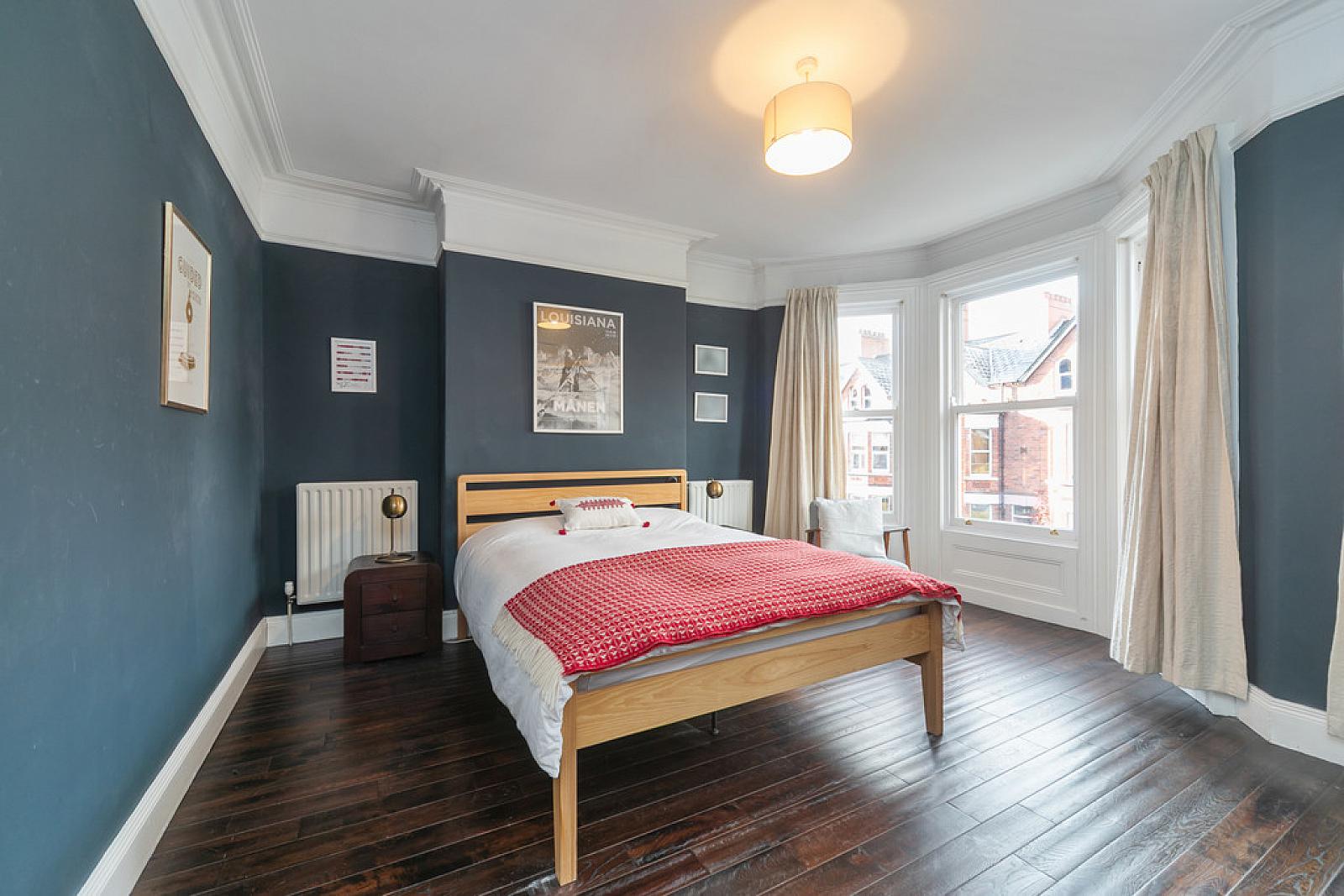 BEDROOM 15' 3" x 14' 6" (4.66m x 4.43m) Bay window, sash windows, solid wooden floor, cornicing, picture rail.