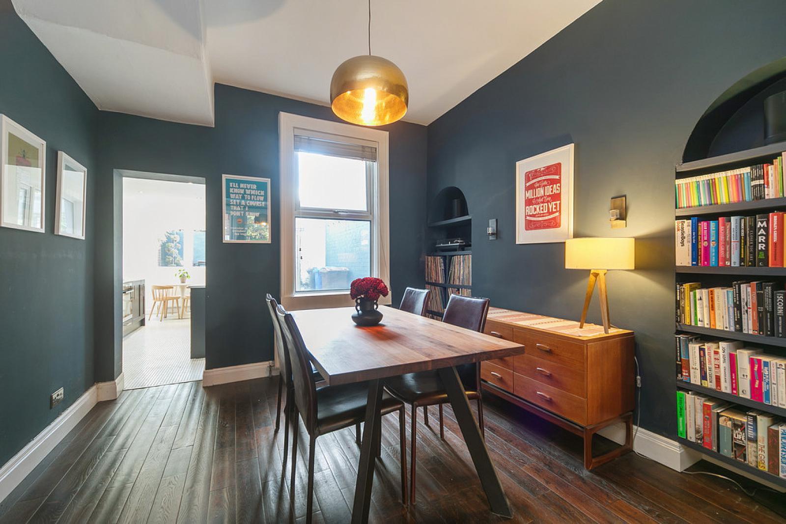 DINING ROOM 11' 1" x 10' 5" (3.40m x 3.19m) Solid wooden floor, display shelving.
