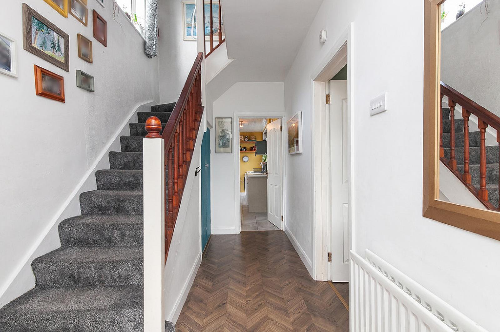ENTRANCE HALL Double glazed door, under stair storage, wood strip flooring
