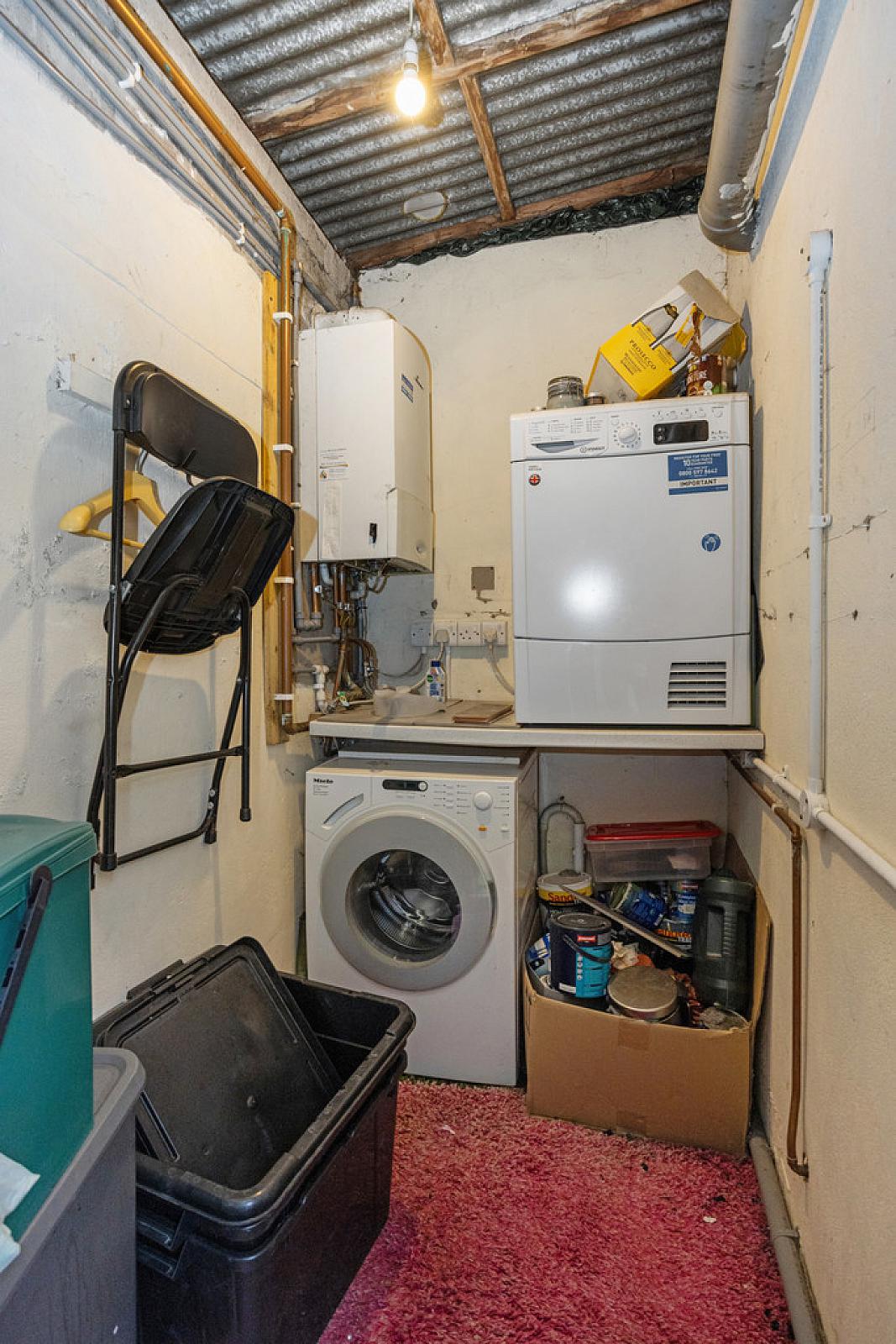 UTILITY STORE 15' 4" x 5' 5" (4.67m x 1.65m)(Widest points) Plumbed for washing machine. Space for tumble drier. Gas boiler.