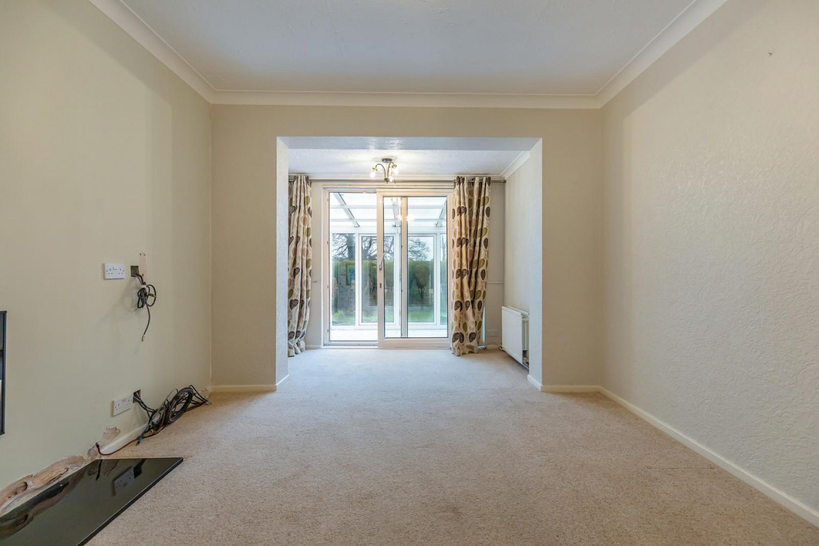 OUTSIDE Extensive rear gardens laid in lawn with mature shrubs and hedges. Raised patio area.