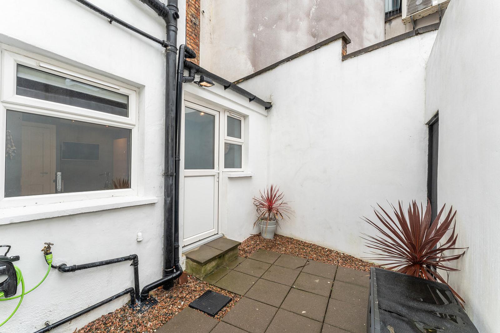 OUTSIDE Front forecourt and enclosed rear yard.