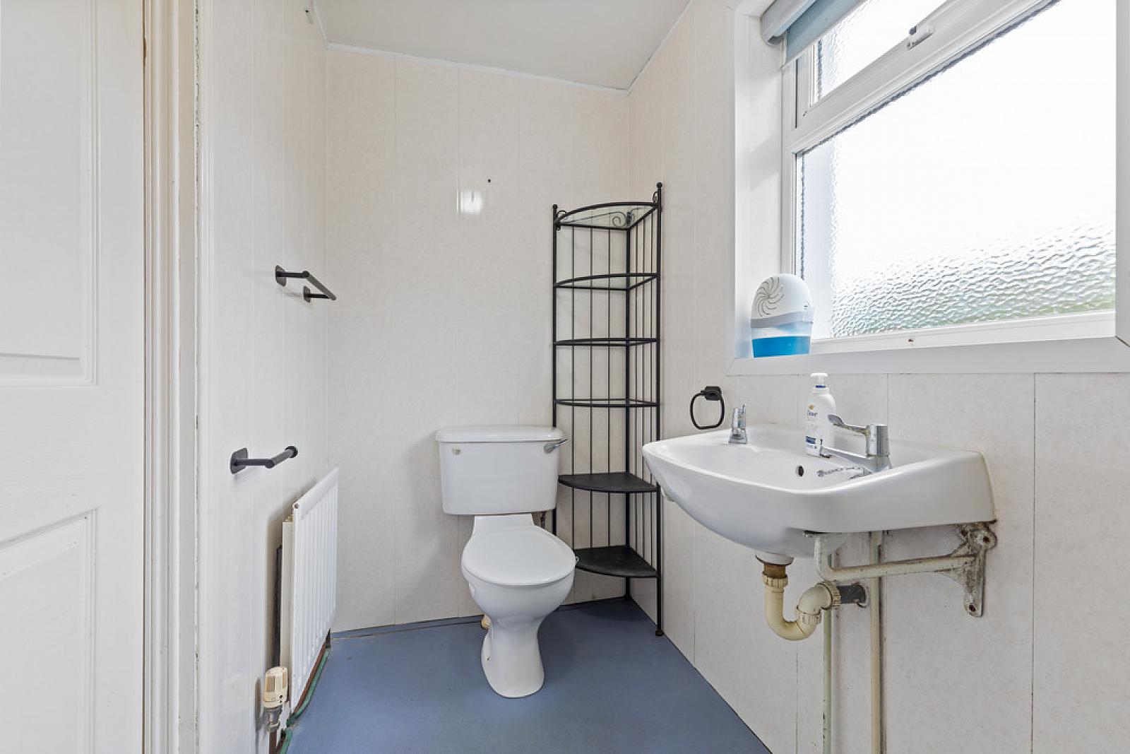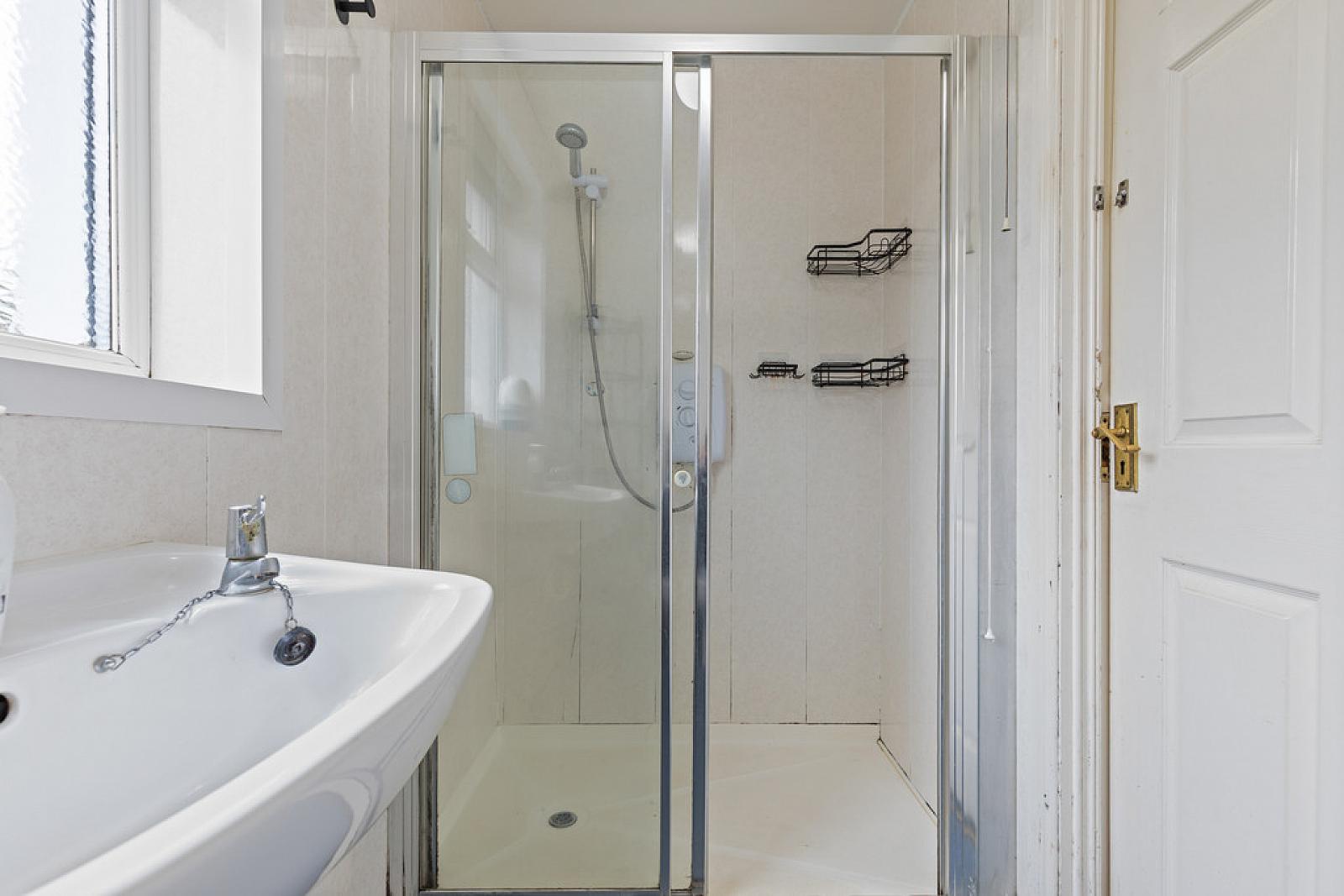 SHOWER ROOM Multi-panel shower cubicle with electric shower, low flush w.c, wash hand basin with chrome taps.