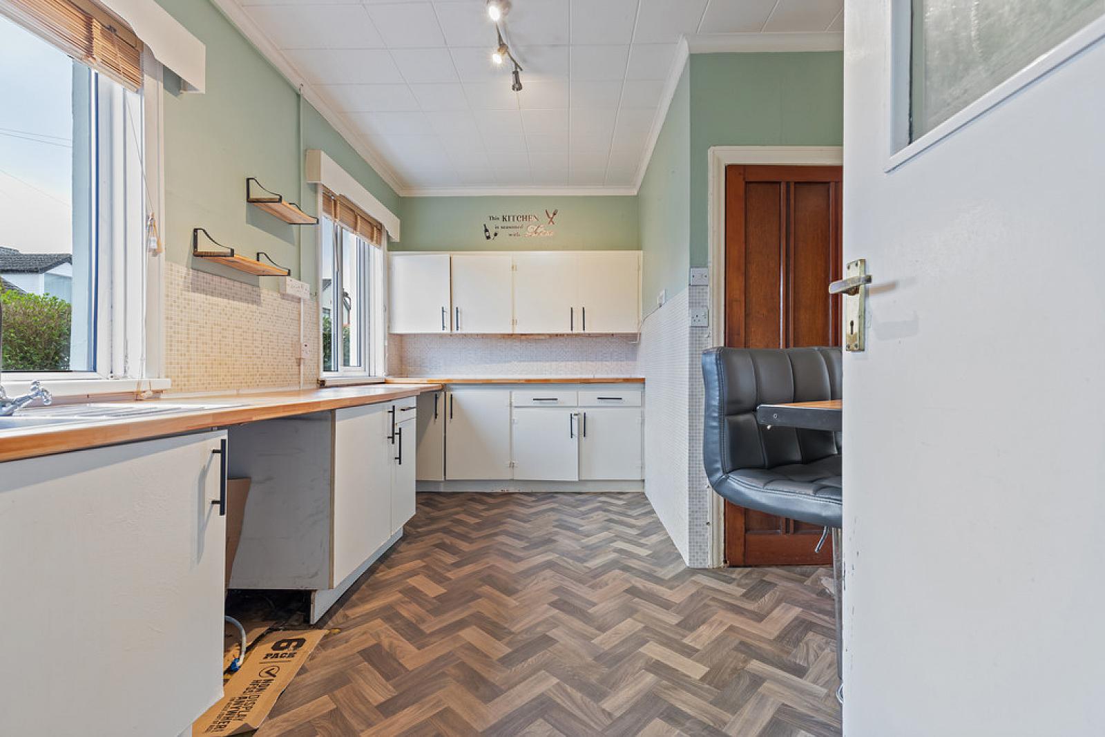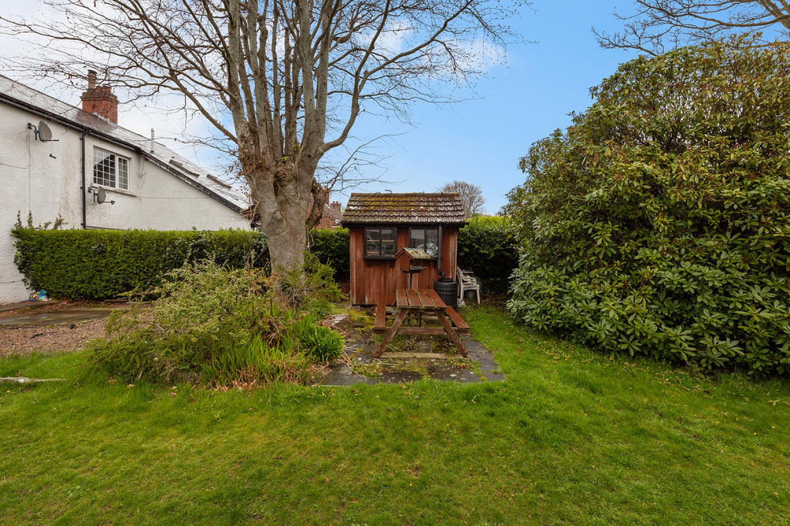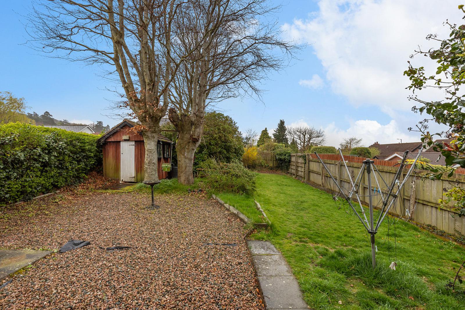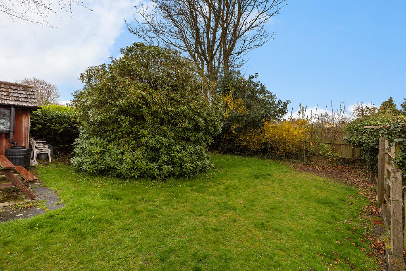 The property occupies a generous plot and benefits from a large, mature rear garden laid in lawn with patio, and driveway parking.