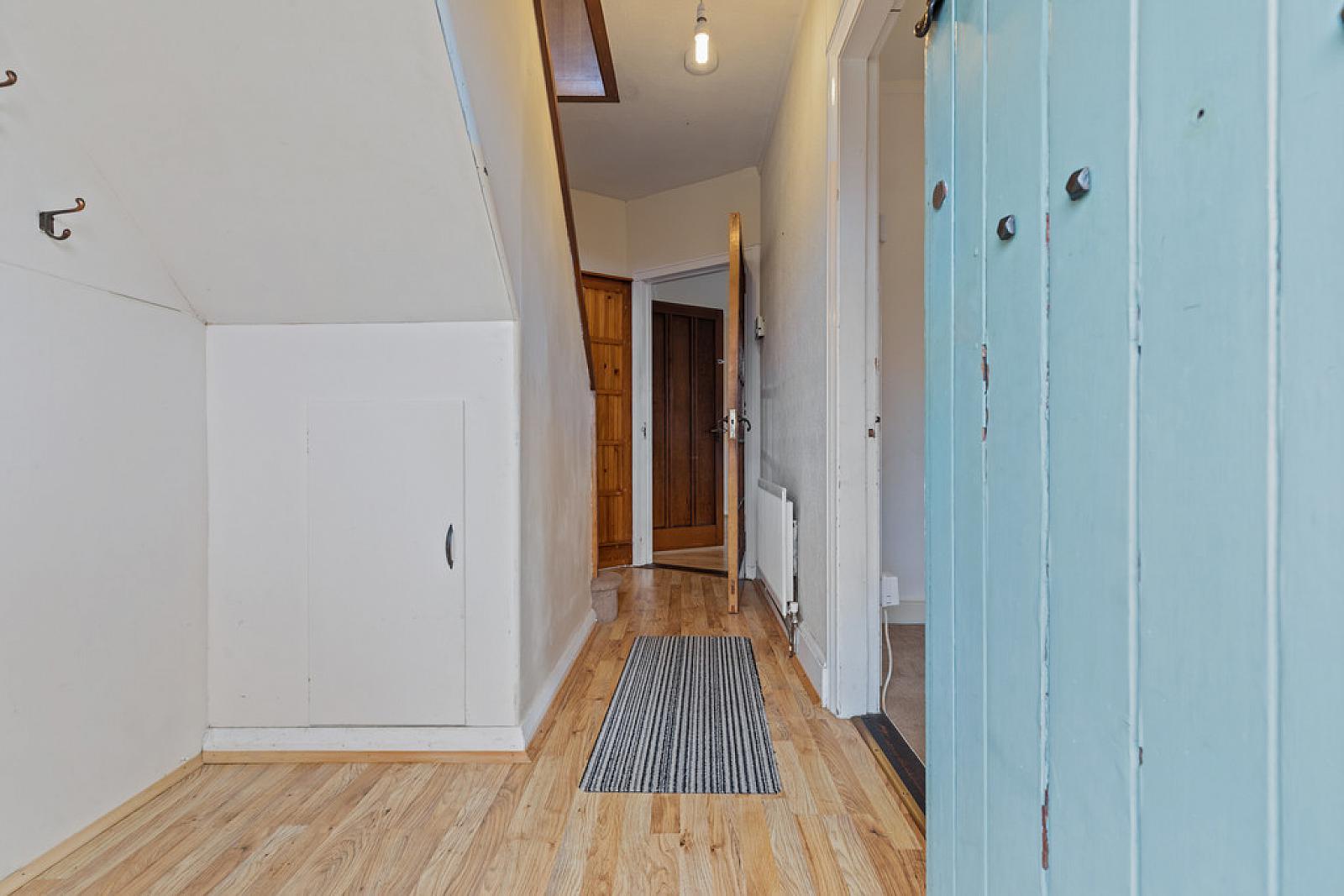 ENTRANCE HALL Wooden front door, under stair recess, laminate wooden floor.