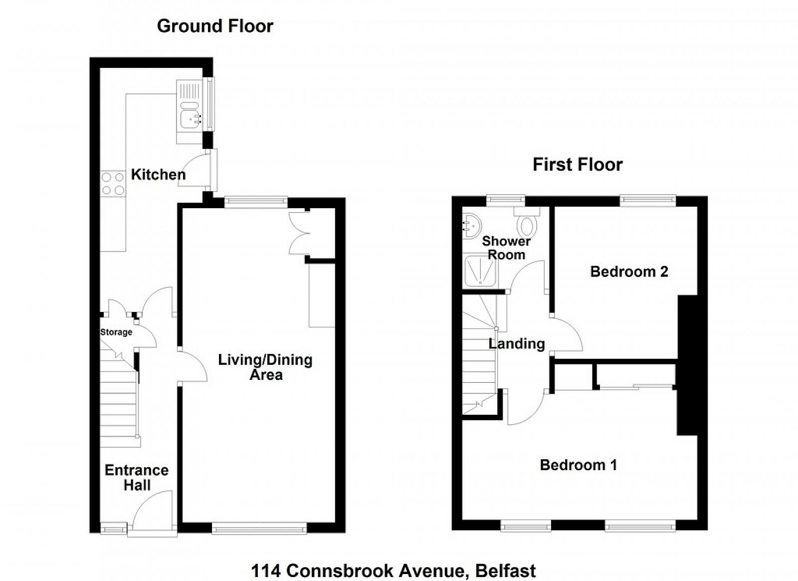The accommodation comprises a bright and spacious living/dining room and a modern fitted kitchen on the ground floor. The first floor offers two well-proportioned bedrooms along with a contemporary shower room.