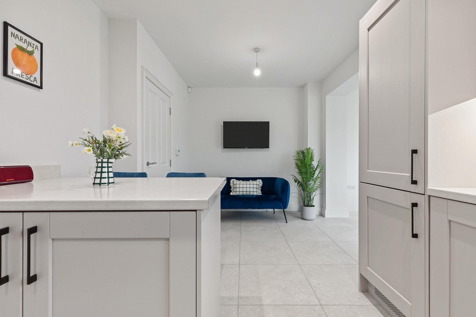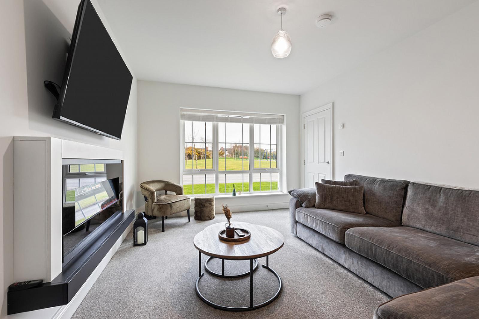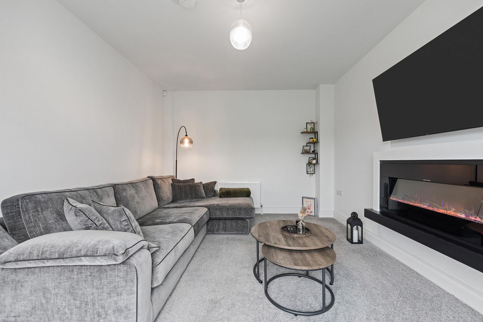 Bright And Spacious Lounge With Feature Wall Mounted LED Electric Fire