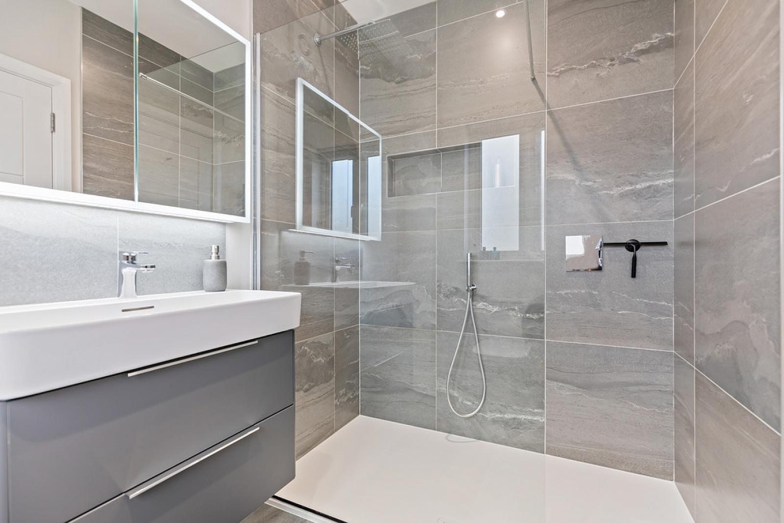 Contemporary Family Bathroom In White Suite To First Floor & Second Floor Luxury Shower Room