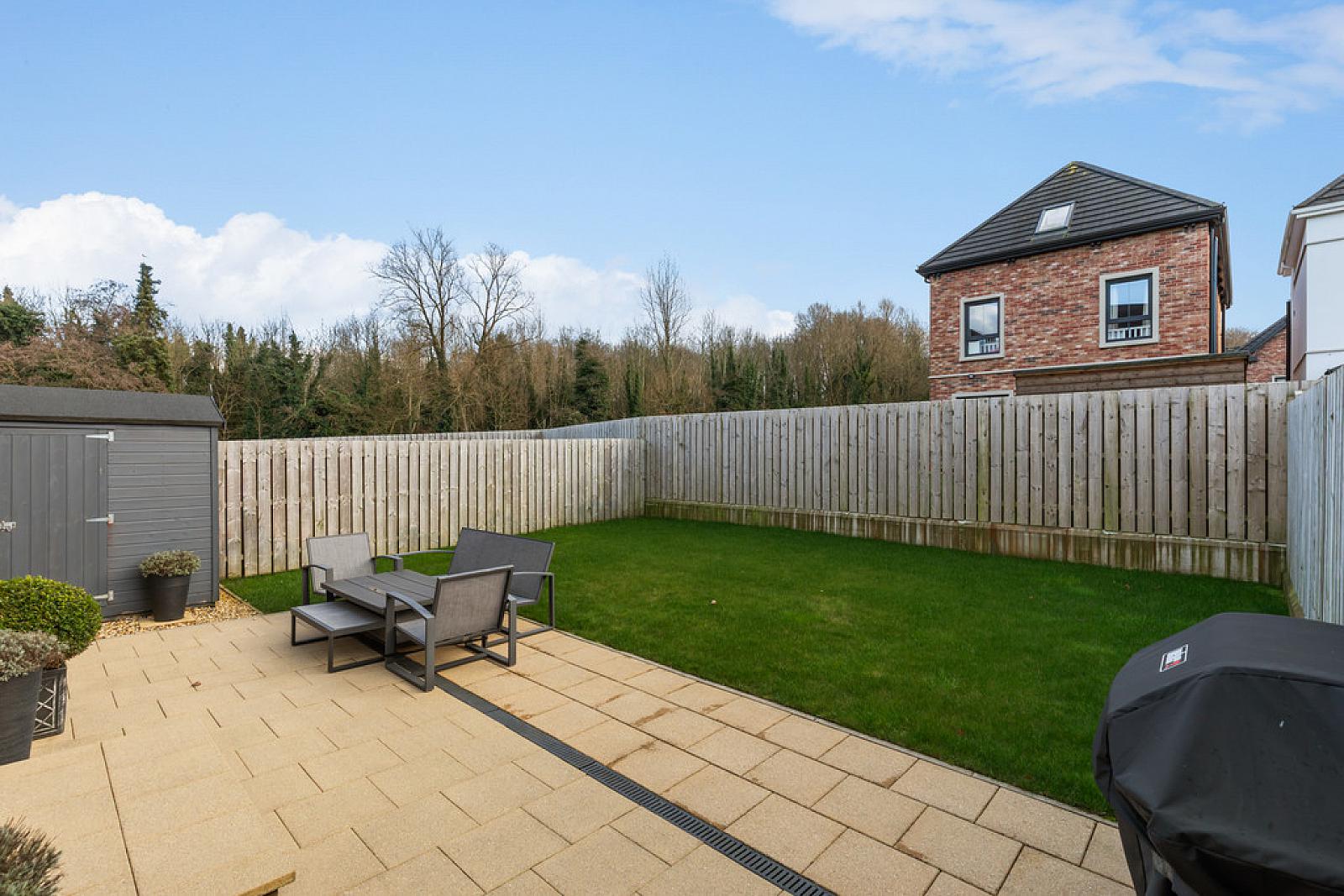 Private Enclosed South Facing Rear Garden Laid In Lawn With Patio