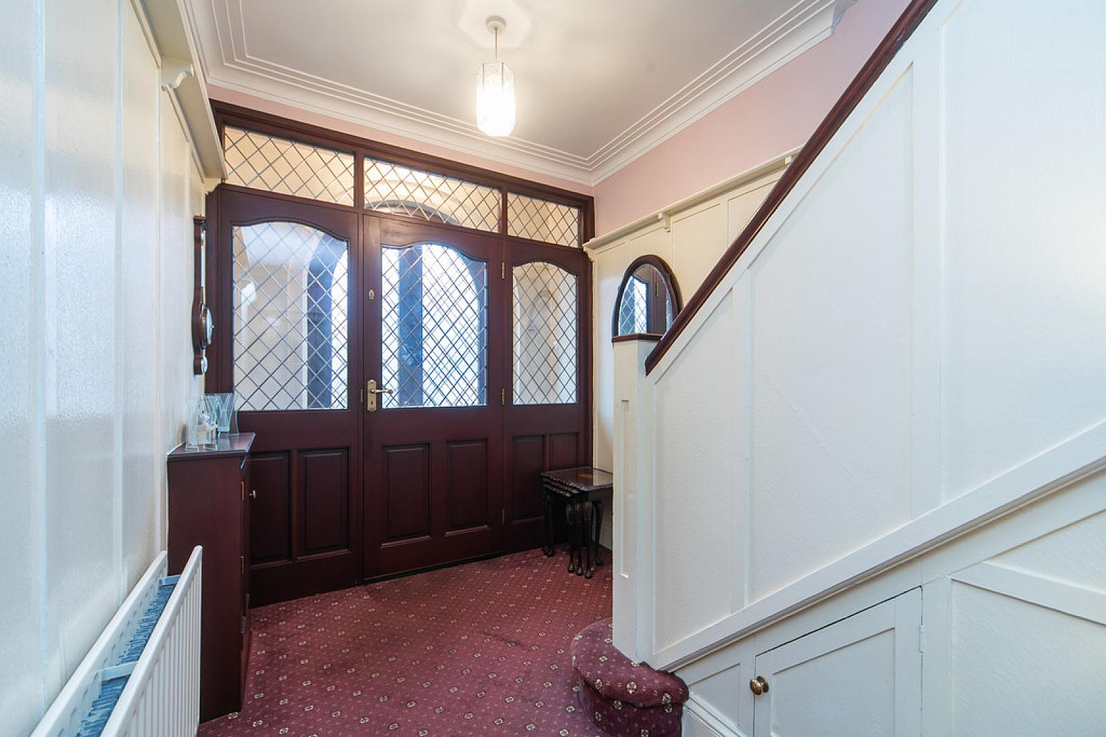 ENTRANCE PORCH Terrazzo floor, glazed door with glazed side windows to reception hall.